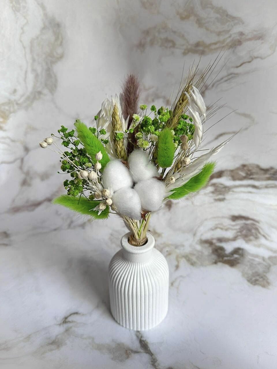 Отзывы на Букет сухоцветов мини Trava Decor комплимент лагурус, гипсофила, хлопок