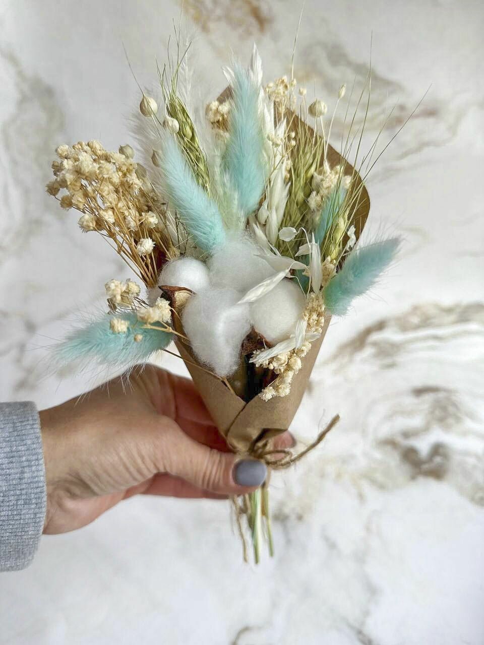 10 цен на Букет комплимент сухоцветов лагурус, хлопок, гипсофила