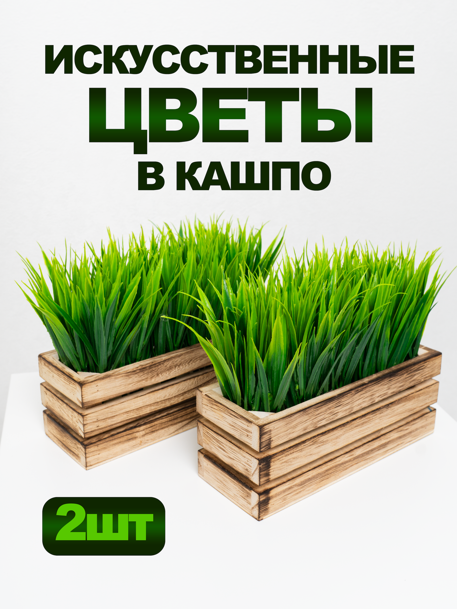 Искусственные цветы трава в квадратном кашпо декоративная для офиса, ванной, комнаты 2 шт 755 ₽