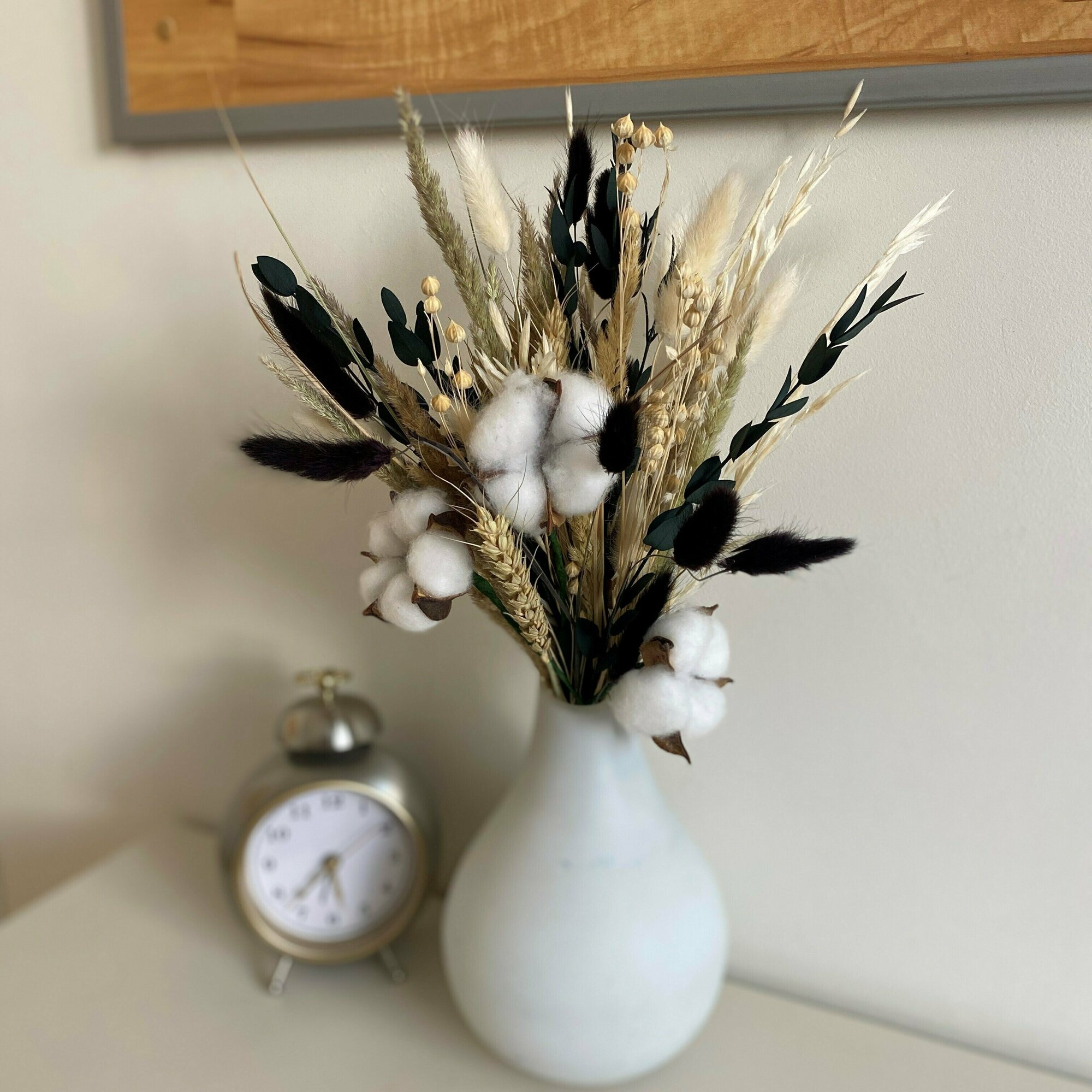 Долговечный букет сухоцветов Стабилизированные цветы Букет для вазы(лагурус,эвкалипт,лен,рожь,пшеница)для декора и интерьера,безуходные цветы.