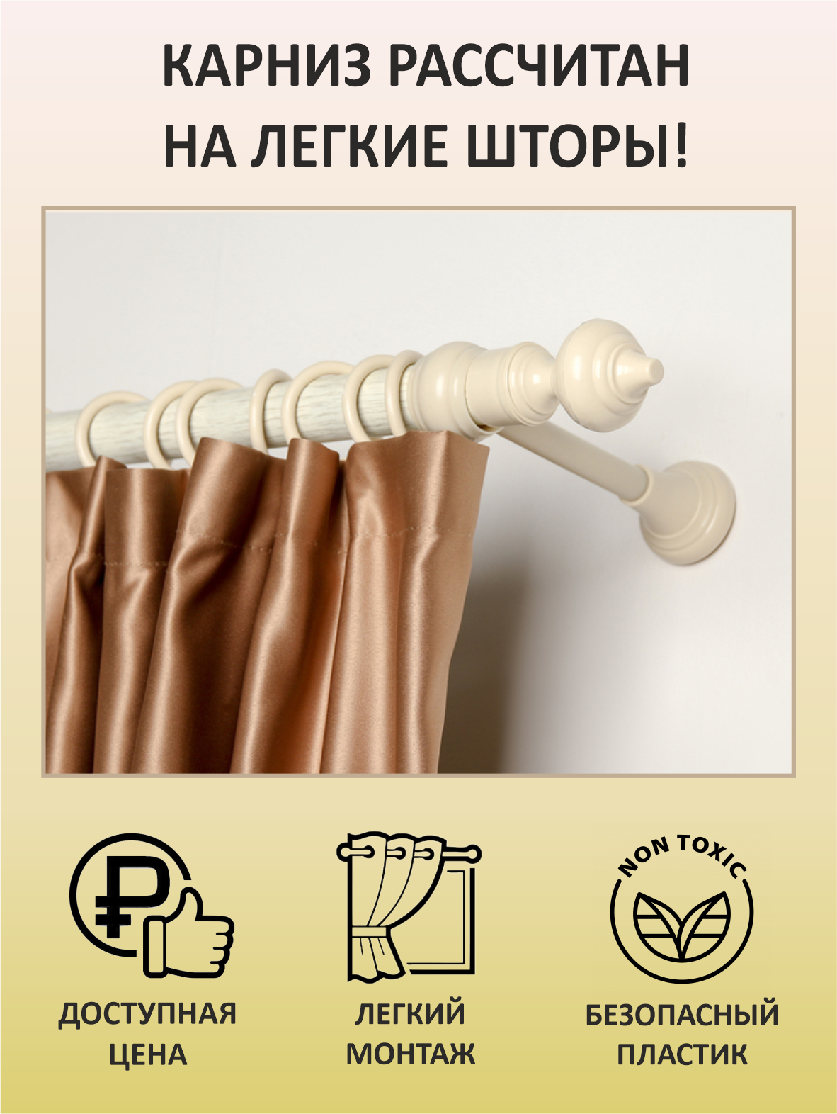 Карниз для штор настенный однорядный "Дубрава" 200 см, Кремовый, металл/пластик, прямой, Модерн, для легких штор 1 249 ₽