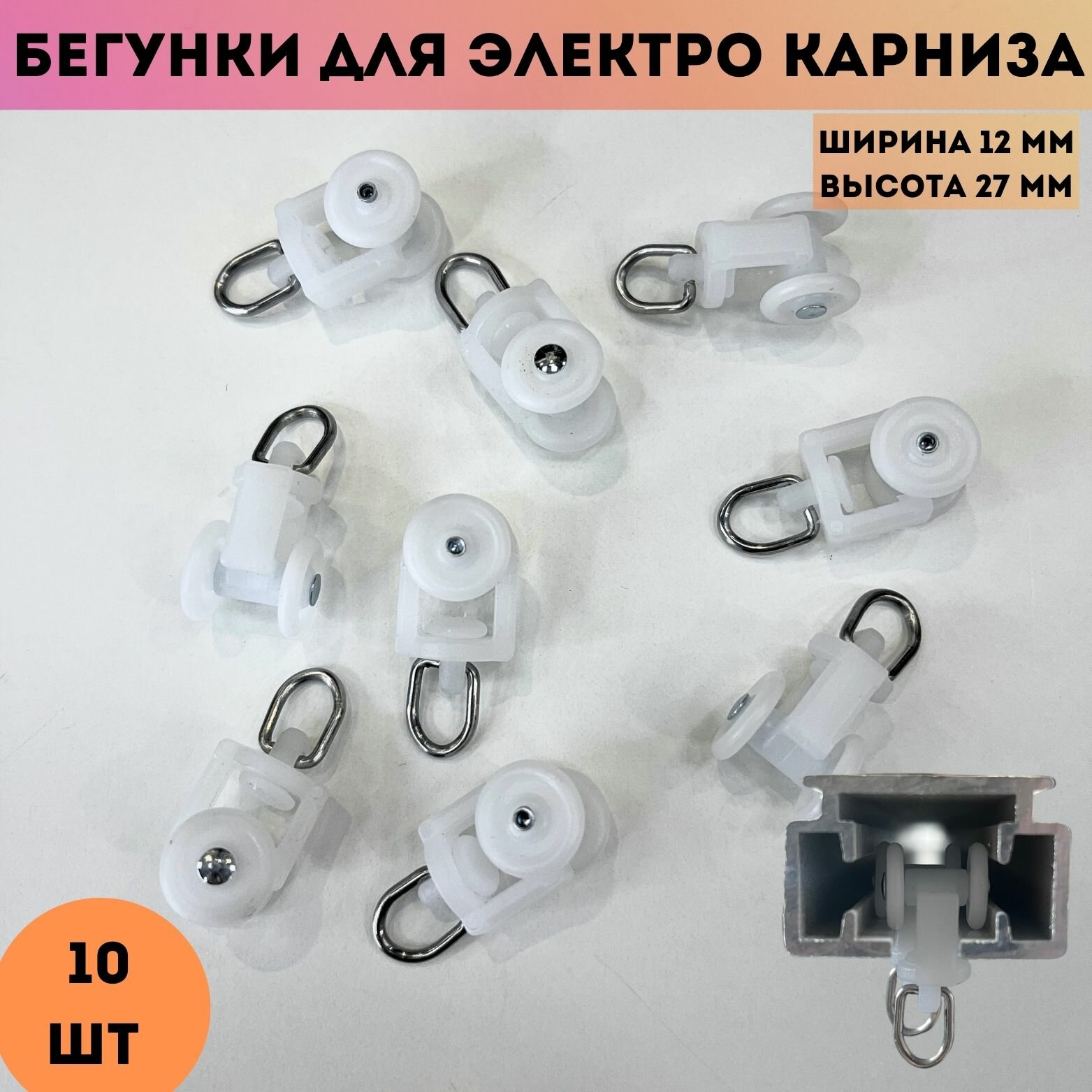 10 цен на Бегунки (крючки) для электрокарниза ш. 12 мм (Xiaomi, Dooya, Amigo, Onviz и др.), 10 шт
