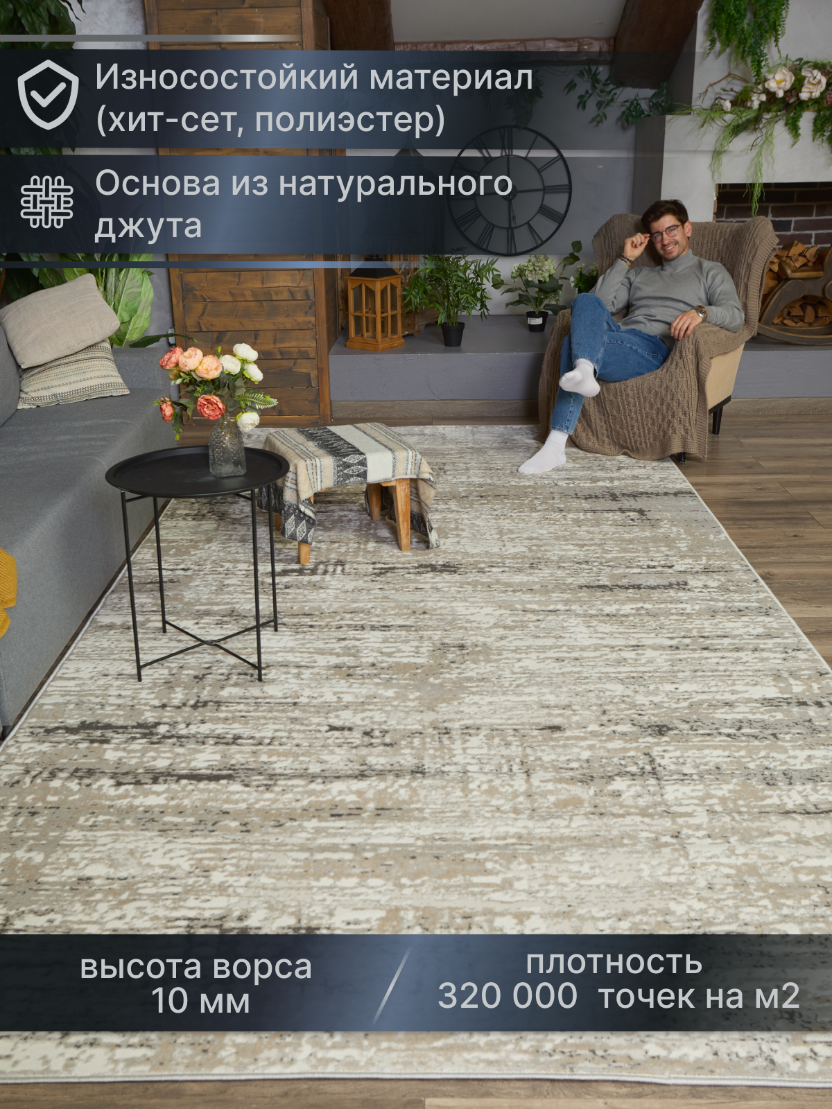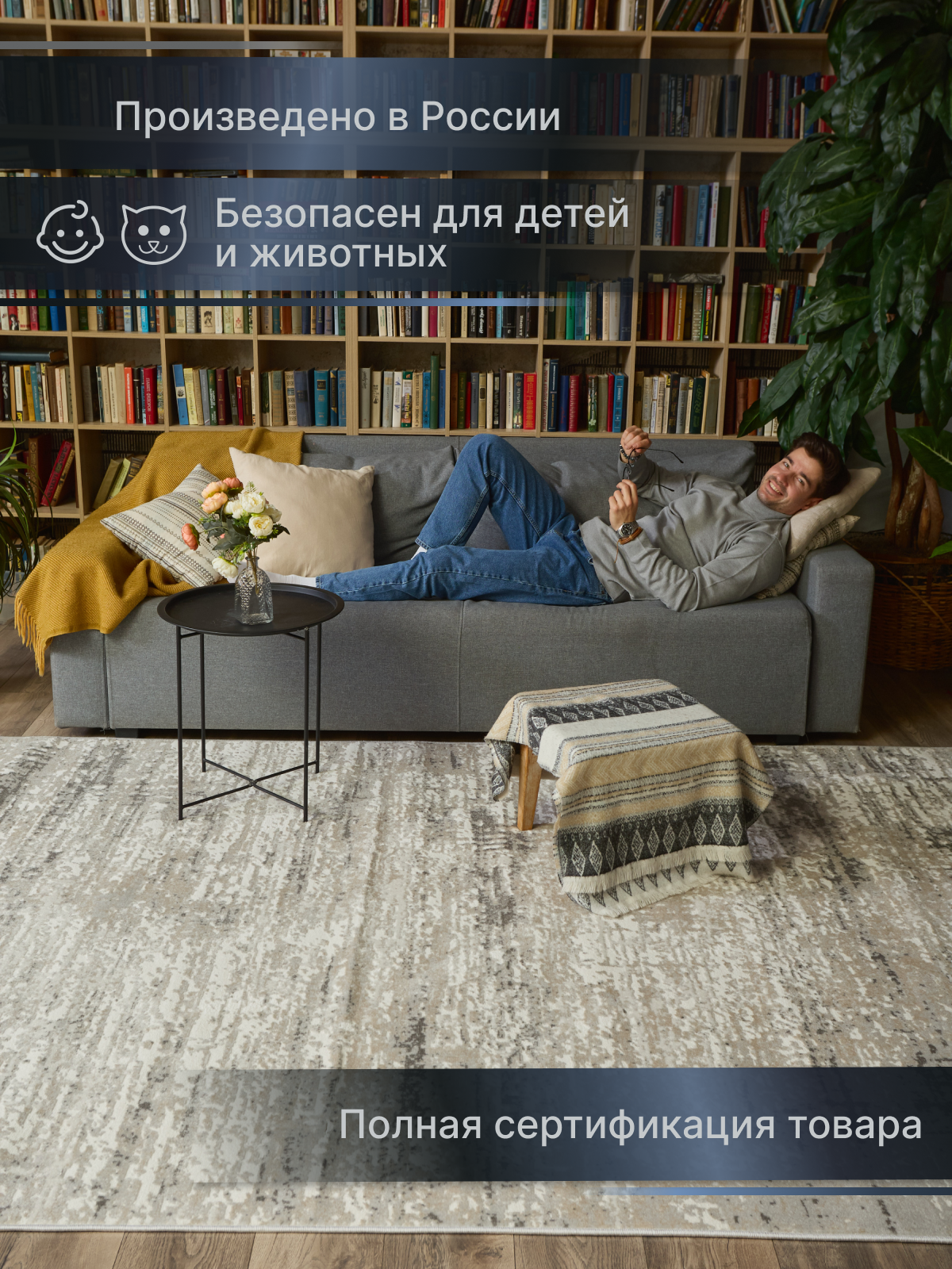 Ковер "Cream-Grey" из Турции, прямоугольный (150x200) в гостиную, зал, спальню, кухню, прихожую, кабинет и комнату
