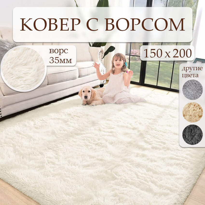 Отзывы на Коврик меховой с длинным ворсом на пол 150x200 белый ковер комнатный, прикроватный, пушистый в комнату, спальню, гостиную, прихожую