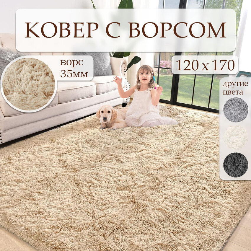 Отзывы на Ковер на пол с длинным ворсом меховой 120х170 бежевый ковер комнатный, прикроватный, пушистый в комнату, спальню, гостиную, прихожую