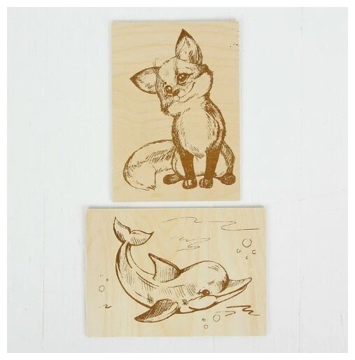 Доски для выжигания 2 шт. Дельфин и Лисенок. 373 ₽