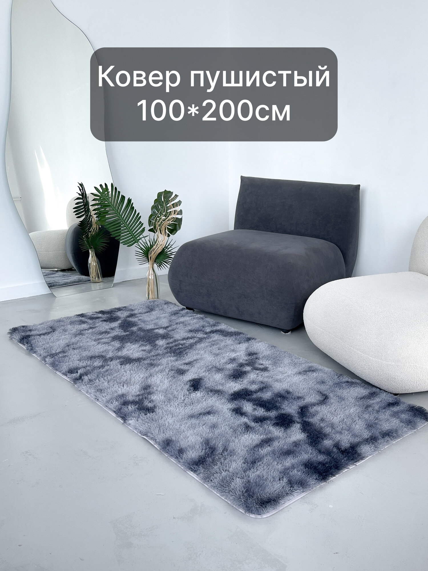 Отзывы на Ковер серо-черный пушистый с длинным ворсом, 100*200см , коврик в детскую, гостиную, спальню, игровую, ванную комнату, прикроватный коврик
