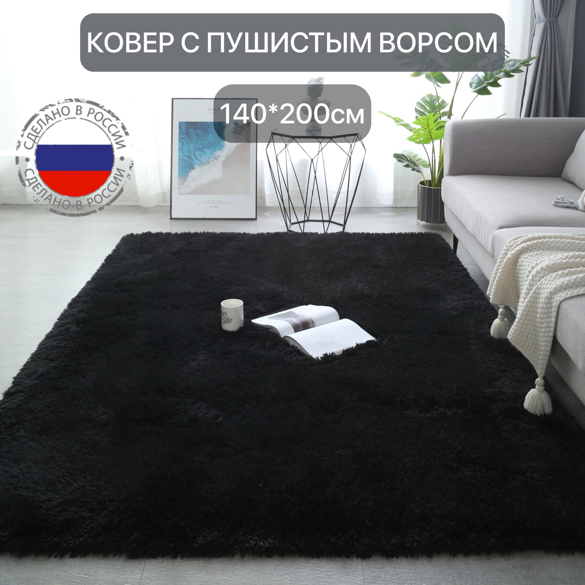Отзывы на Ковер черный пушистый с длинным ворсом, коврик в детскую, гостиную, спальню, игровую, ванную комнату, прикроватный коврик 140*200см