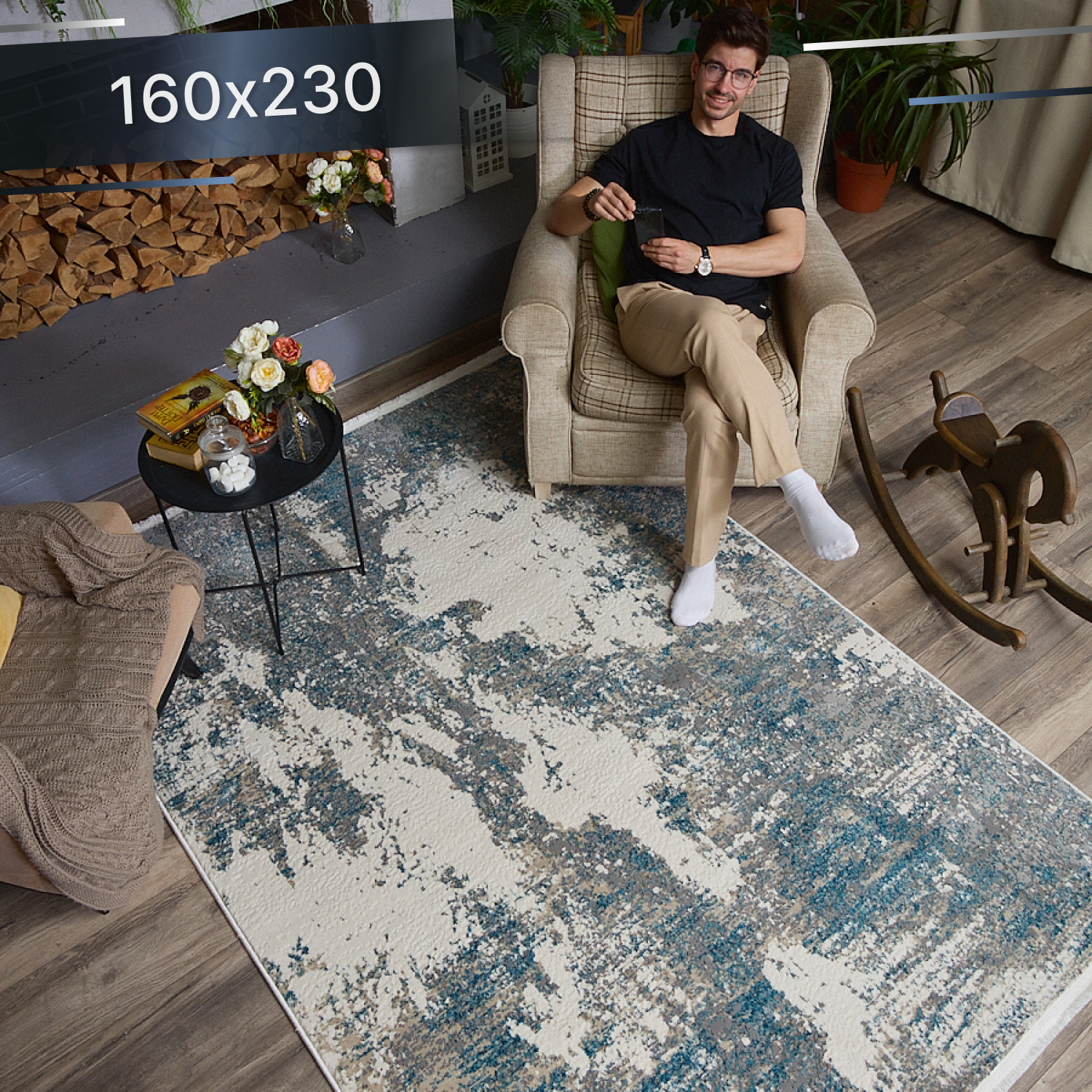 Ковер "Cream-Grey" из Турции, прямоугольный (150x200) в гостиную, зал, спальню, кухню, прихожую, кабинет и комнату