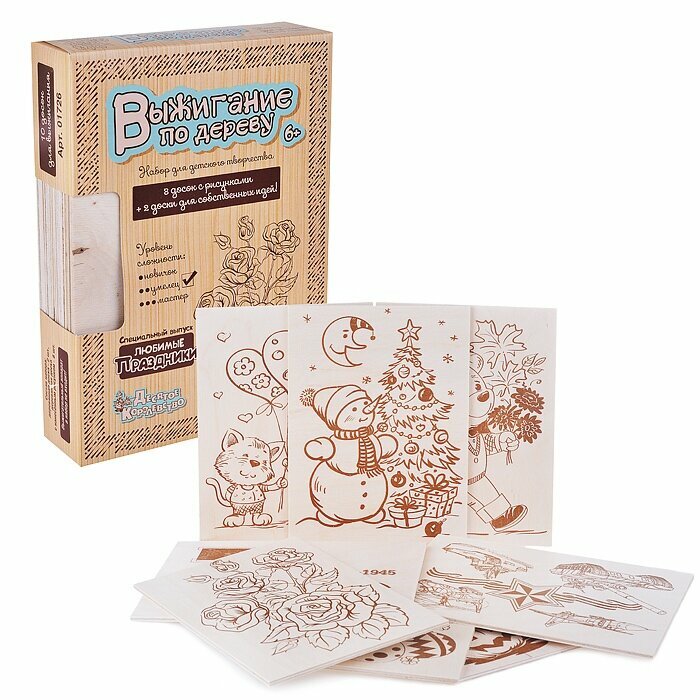 Набор досок для выжигания "Любимые праздники", 10 шт., размер доски: 14.8 x 21.3 x 0.3 см 815 ₽