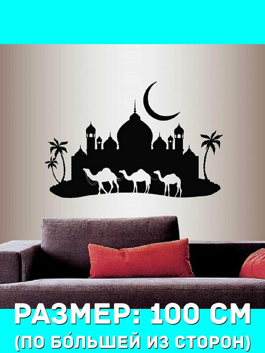10 цен на Наклейки декоративная большая на стену - замок, пальмы, арабская ночь, верблюды, месяц