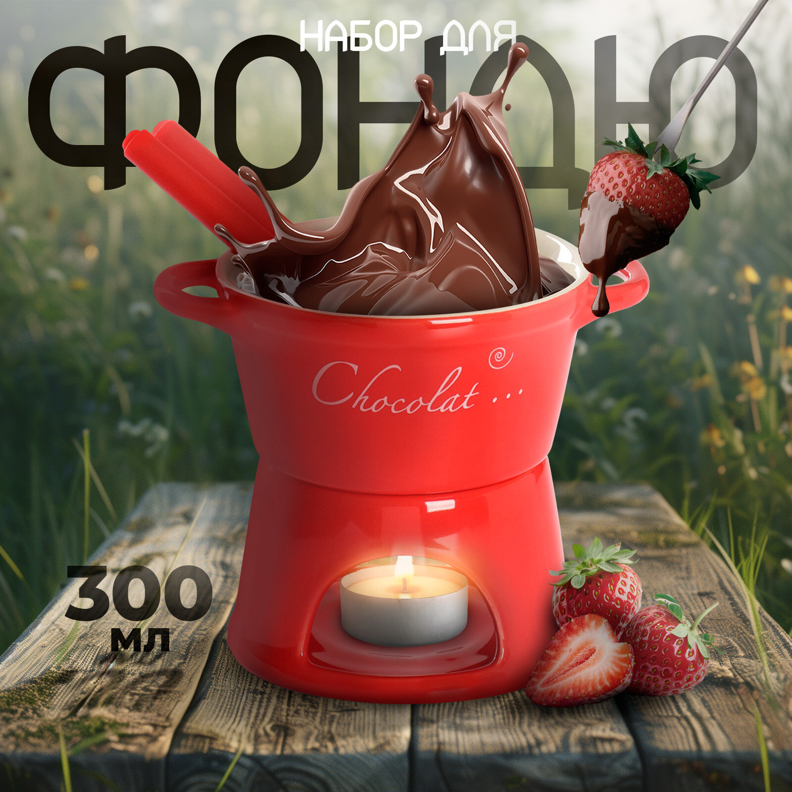 10 цен на Набор для фондю «Лакомка», 4 предмета, цвет красный