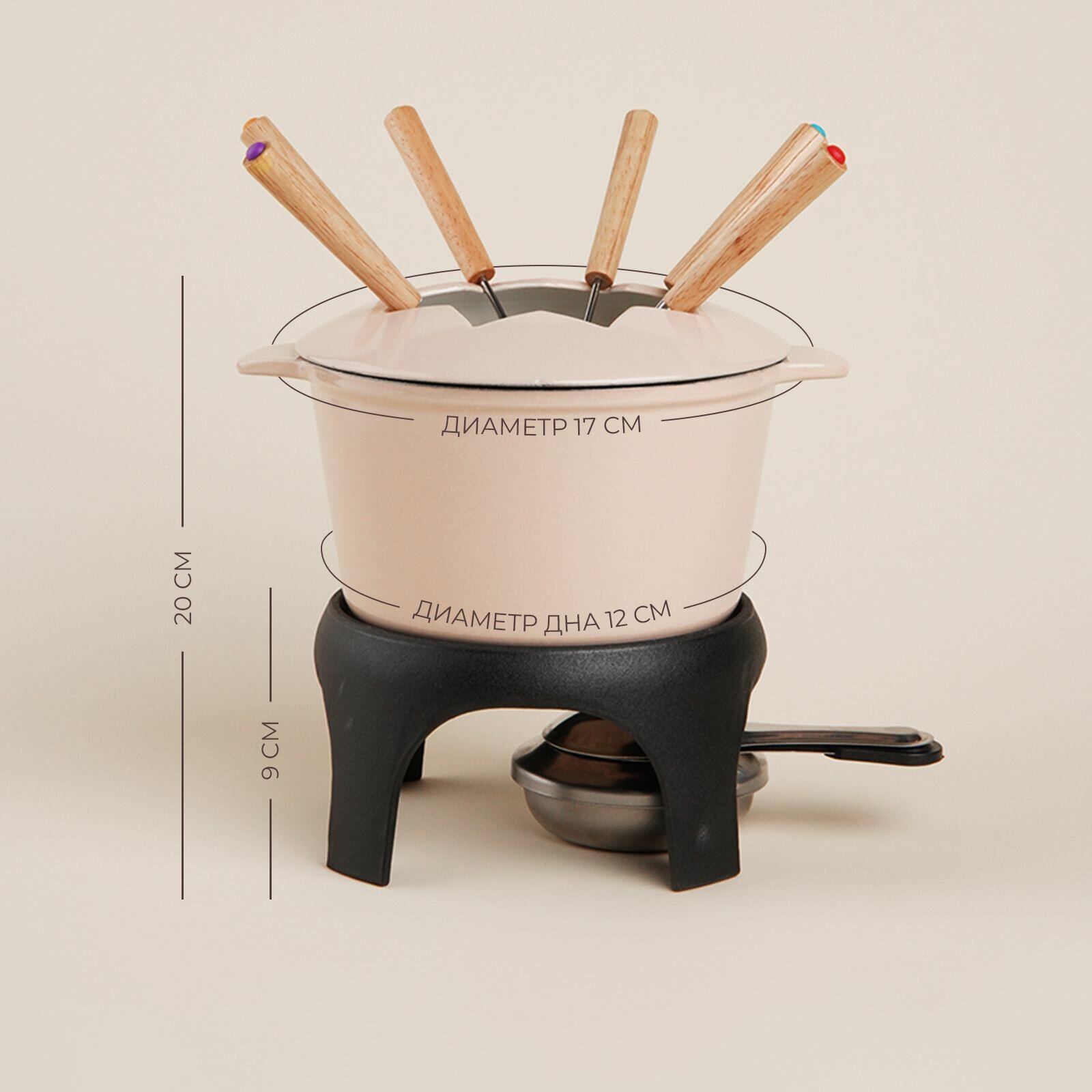 Набор для фондю SL Home, диаметр 17, цвет бежевый, эмалированное покрытие информация: