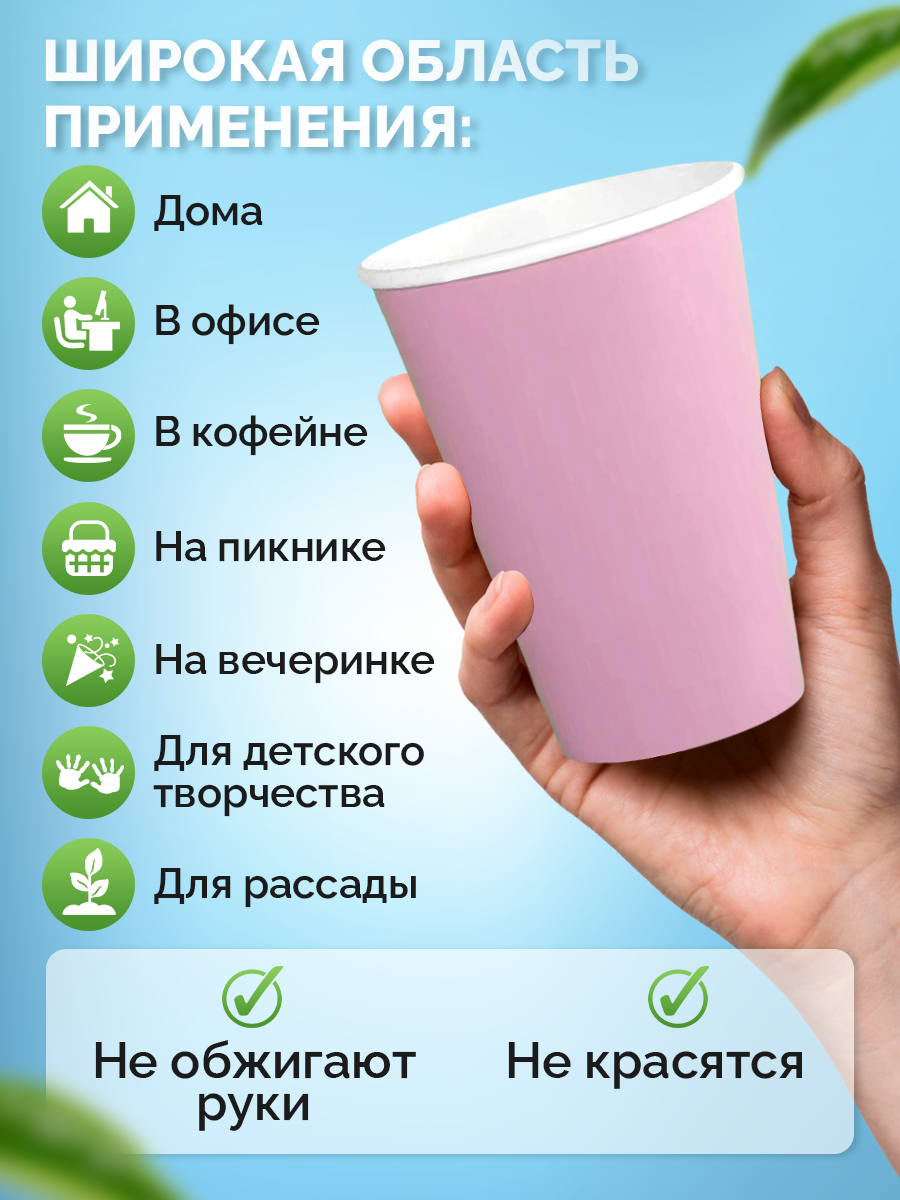 Стаканы одноразовые бумажные 350 мл, для кофе и чая, 50 шт, розовый информация:
