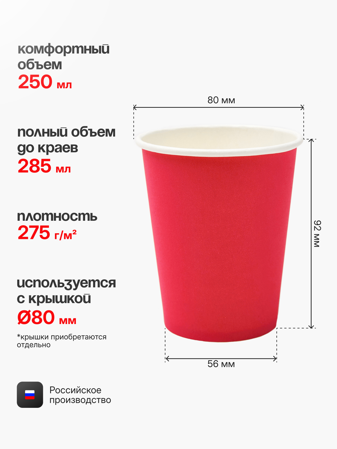 10 цен на Стакан бумажный однослойный 250 мл "Красный", (50шт)
