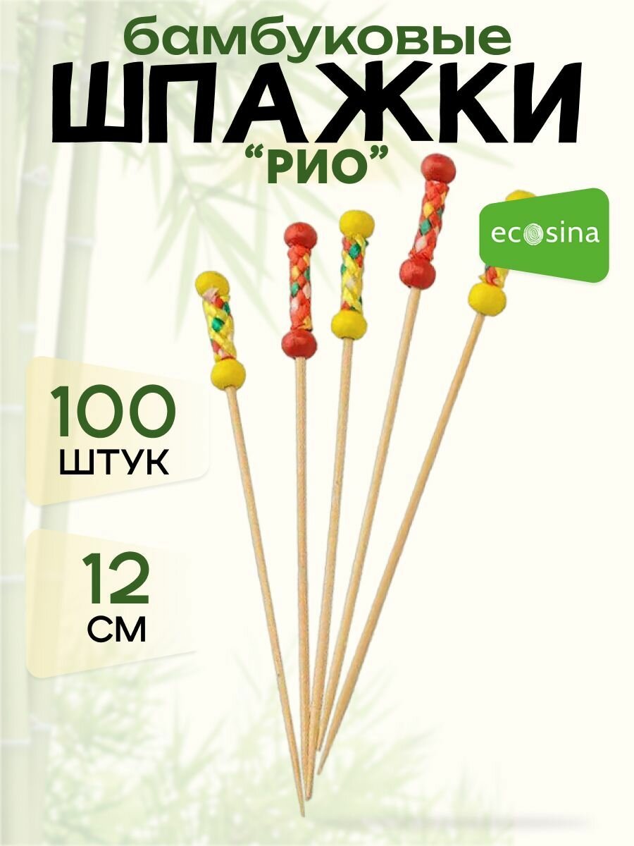 10 цен на Шпажки "Ecosina" бамбуковые "РИО желтый и красный" деревянные 12 см 100 для канапе и бургеров