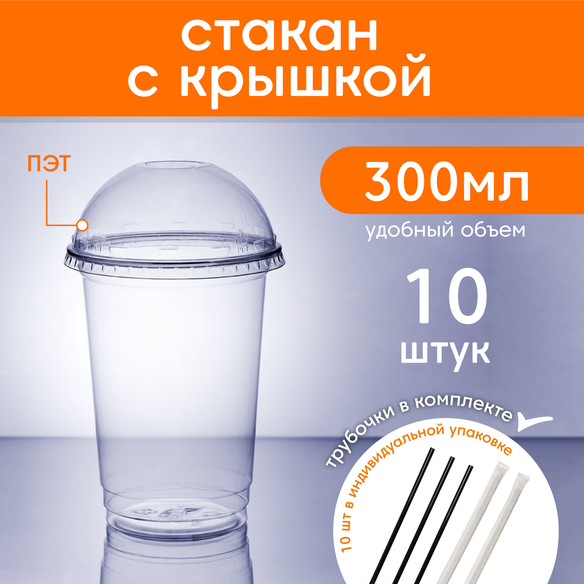 10 цен на Стаканы одноразовые для коктейлей с трубочками 300 мл 10 шт