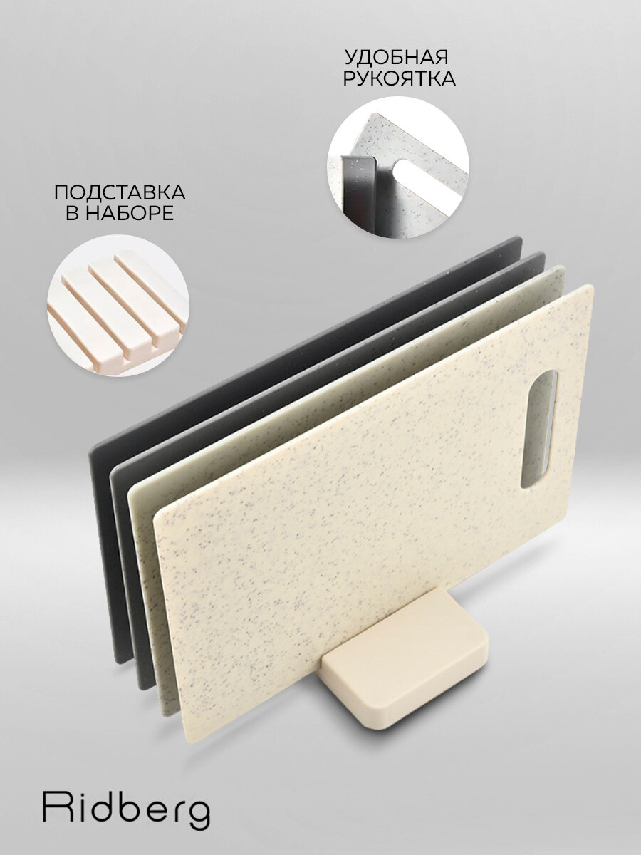 Доска разделочная пластиковая набор 4 шт Ridberg 28.3х18.5 см, с подставкой информация:
