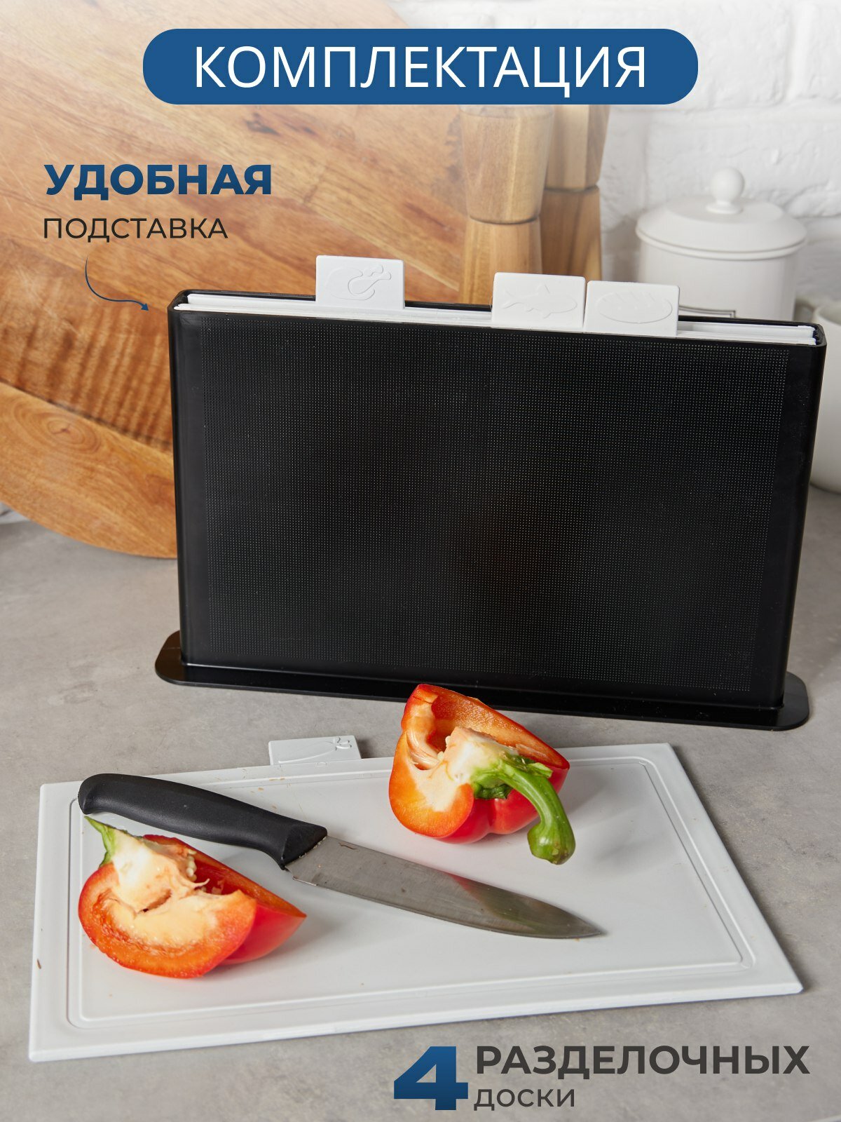 10 цен на Набор разделочных досок, 4 шт. на подставке