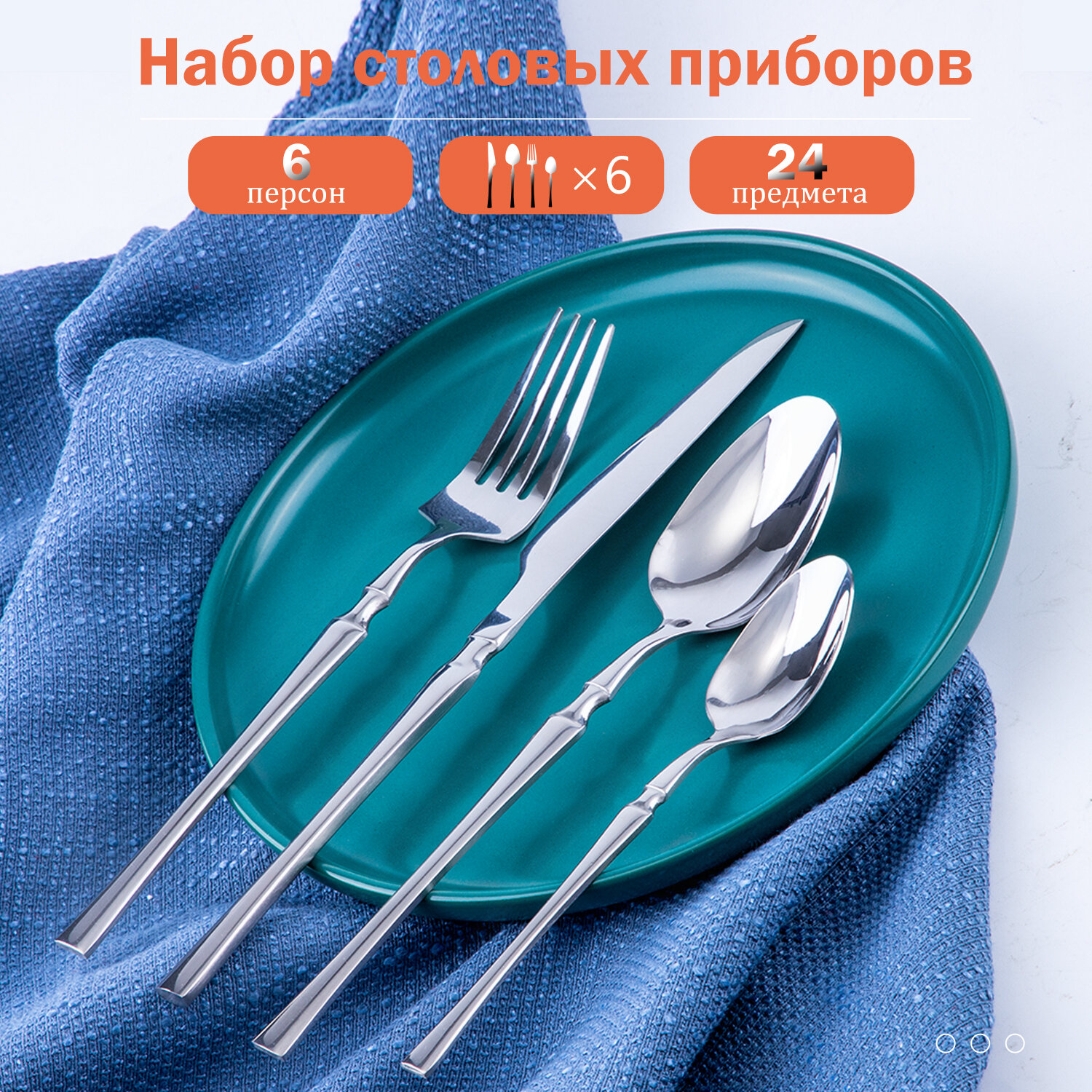 10 цен на Набор столовых приборов на 6 персон из нержавеющей стали, серебрян, 24 предмета