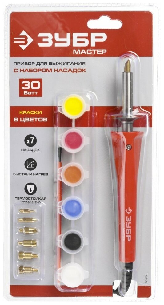 Отзывы на Зубр <55425> Прибор Зубр "мастер" для выжигания с набором насадок 7шт и красками .