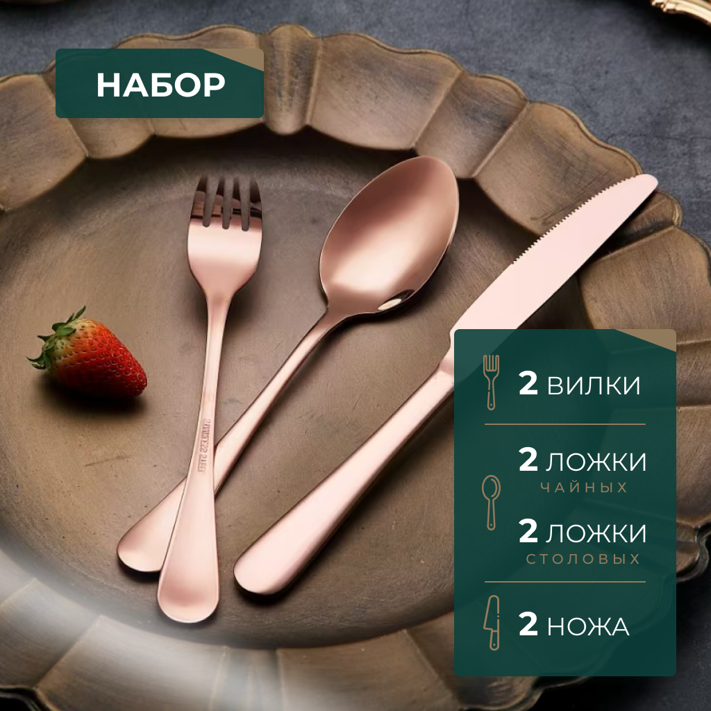 Набор столовых приборов 8 предметов цвета "розовое золото" информация: