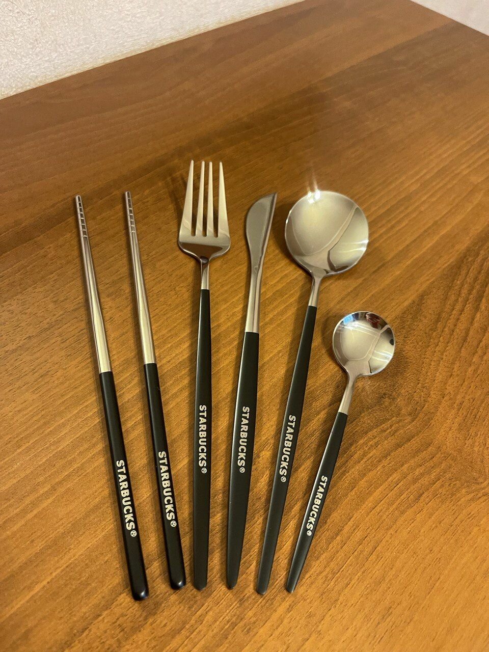 | В набор входит | Столовая ложка, столовая вилка, столовый нож, чайная ложка, палочки для еды (2шт) |