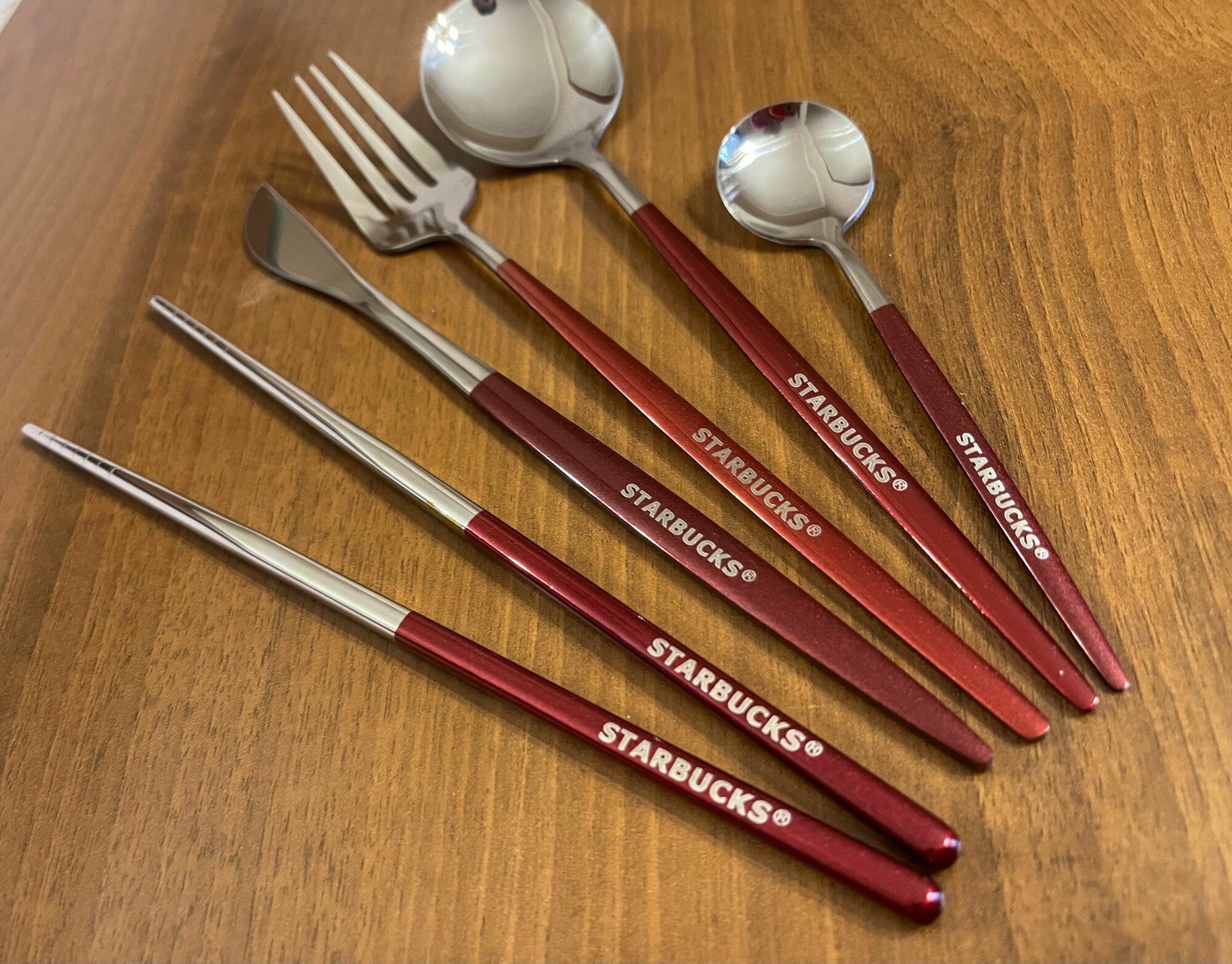 10 цен на Набор столовых приборов Старбакс 6 пр. красный, серебрянный