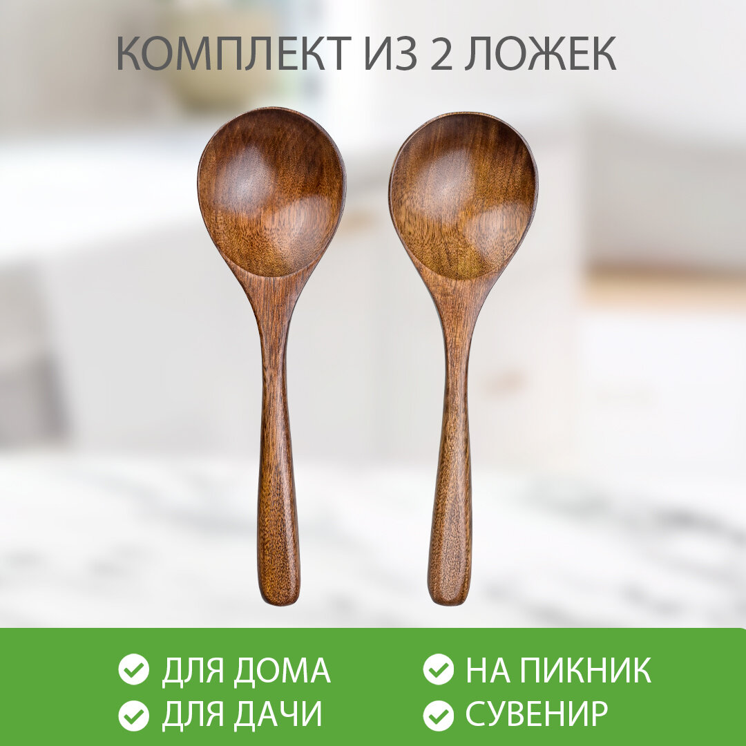 Набор столовых деревянных ложек, 2 шт / Цвет коричневый / Размер 20 х 6 см информация: