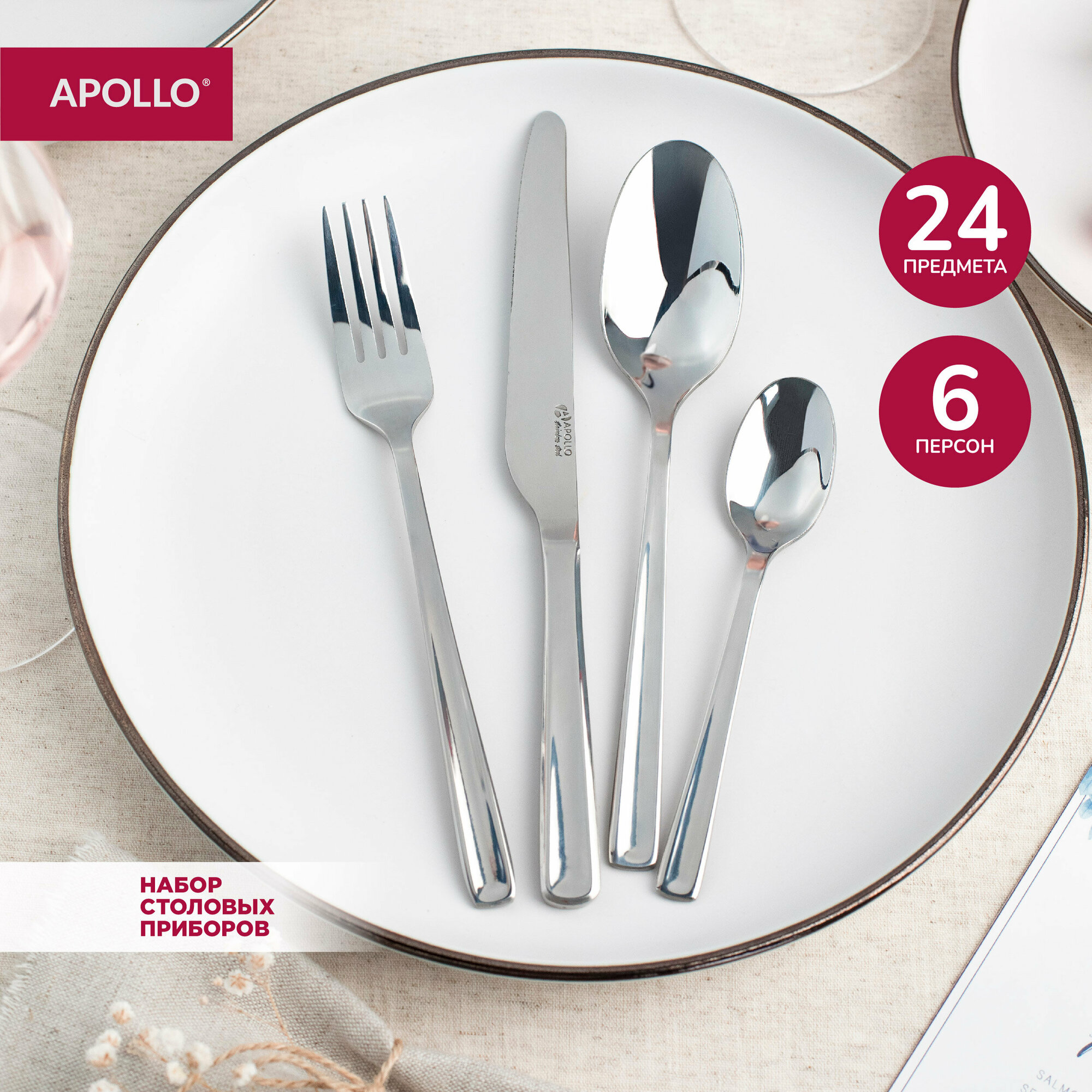 10 цен на Набор столовых приборов нерж сталь, 24 пр, подар уп, Apollo, Gala, GAL-24