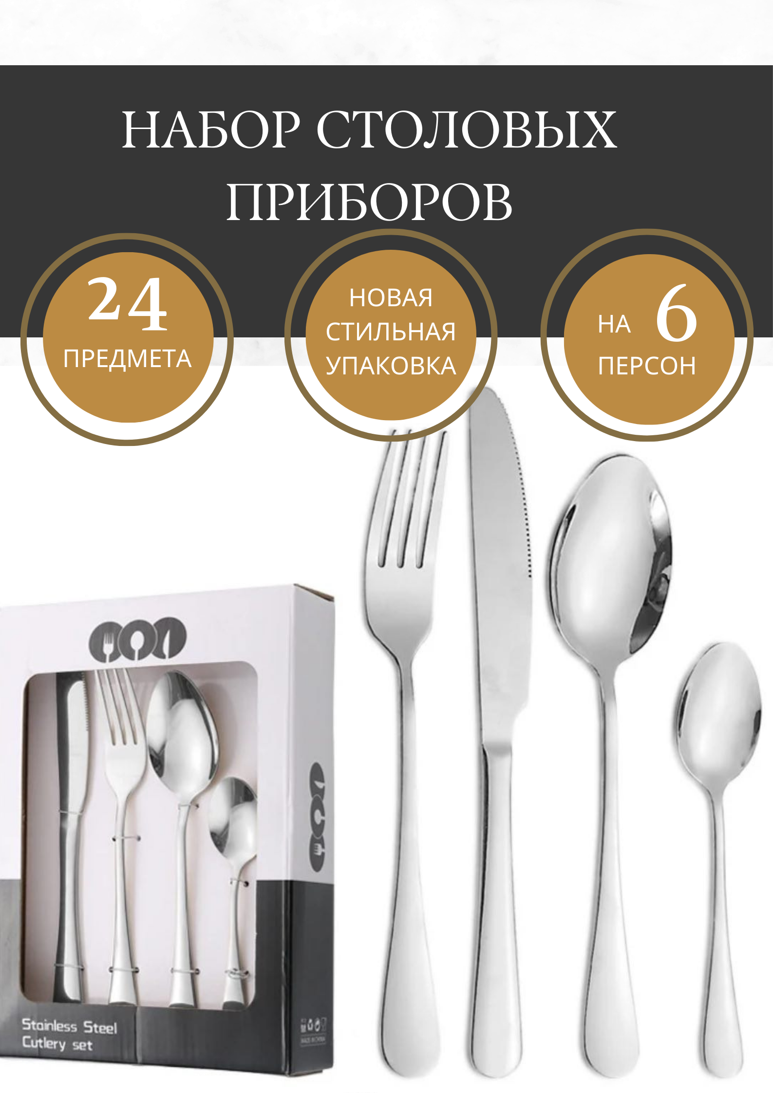 Набор столовых приборов на 6 персон 24 шт в белой упаковке серебро информация: