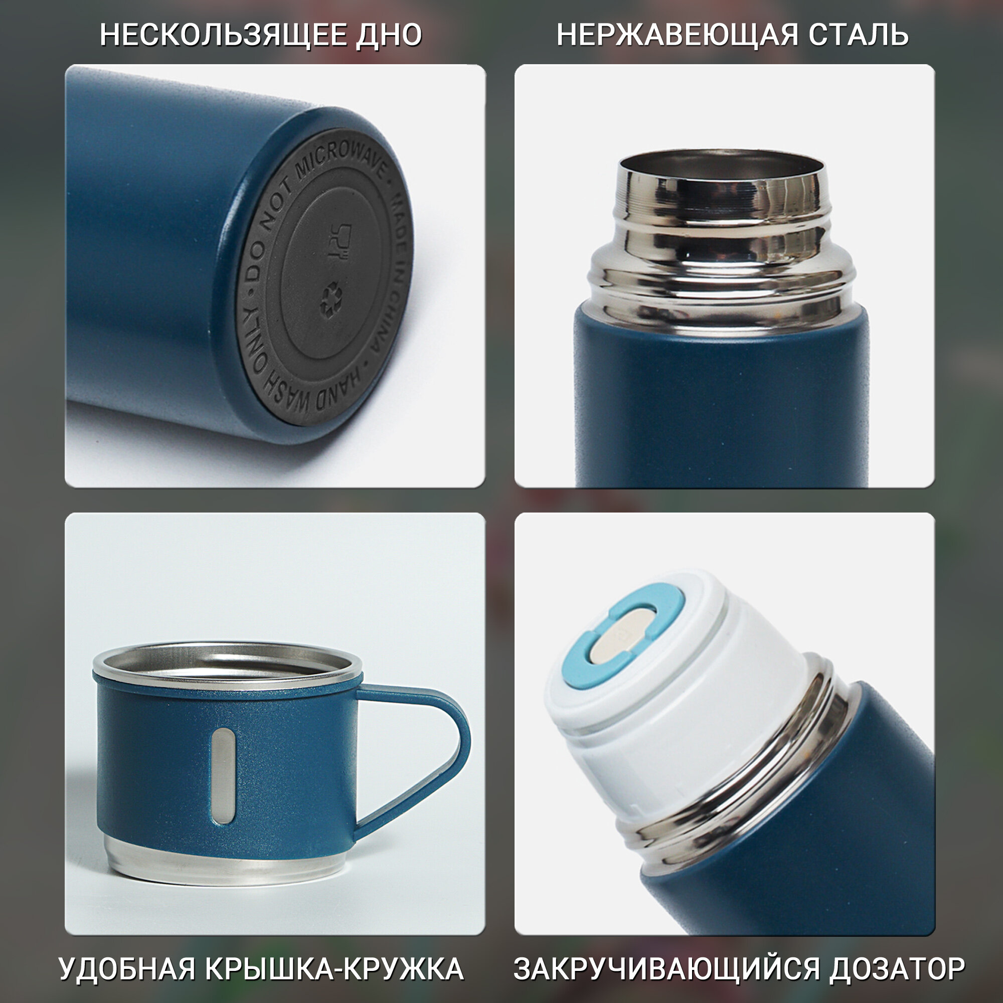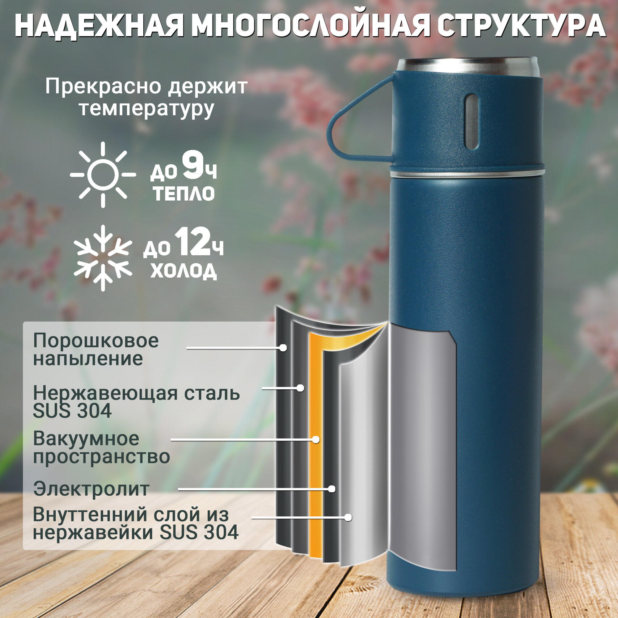 Отзывы на Термос туристический с кружками, металлическая колба с крышкой-клапаном