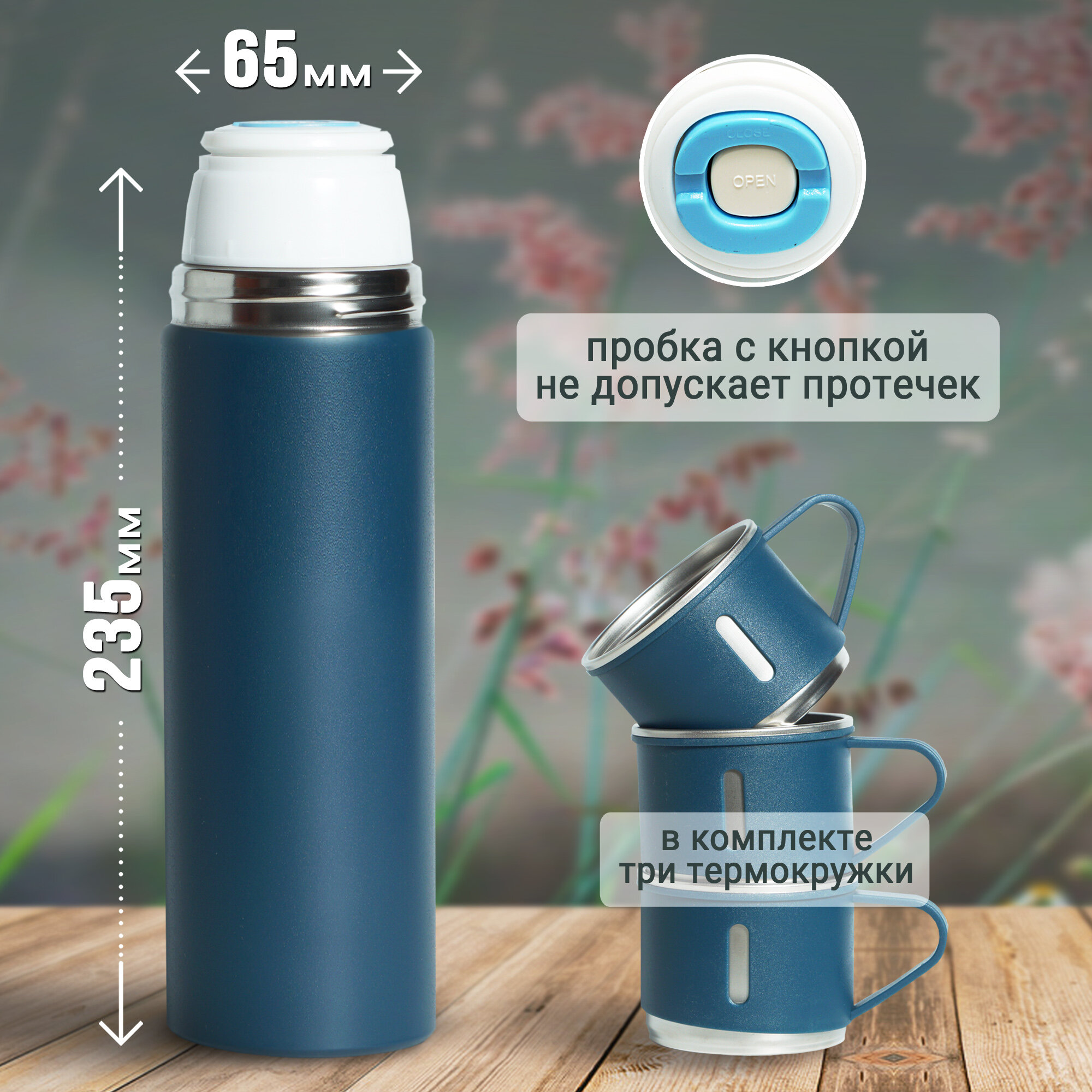 | Комплектация | термос - 1 шт, кружки - 3 шт. |