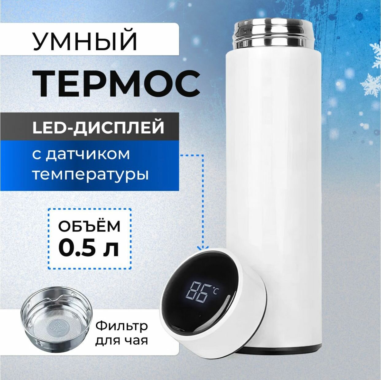 10 цен на Умный термос с LCD дисплеем и датчиком температуры / термобутылка/Белый