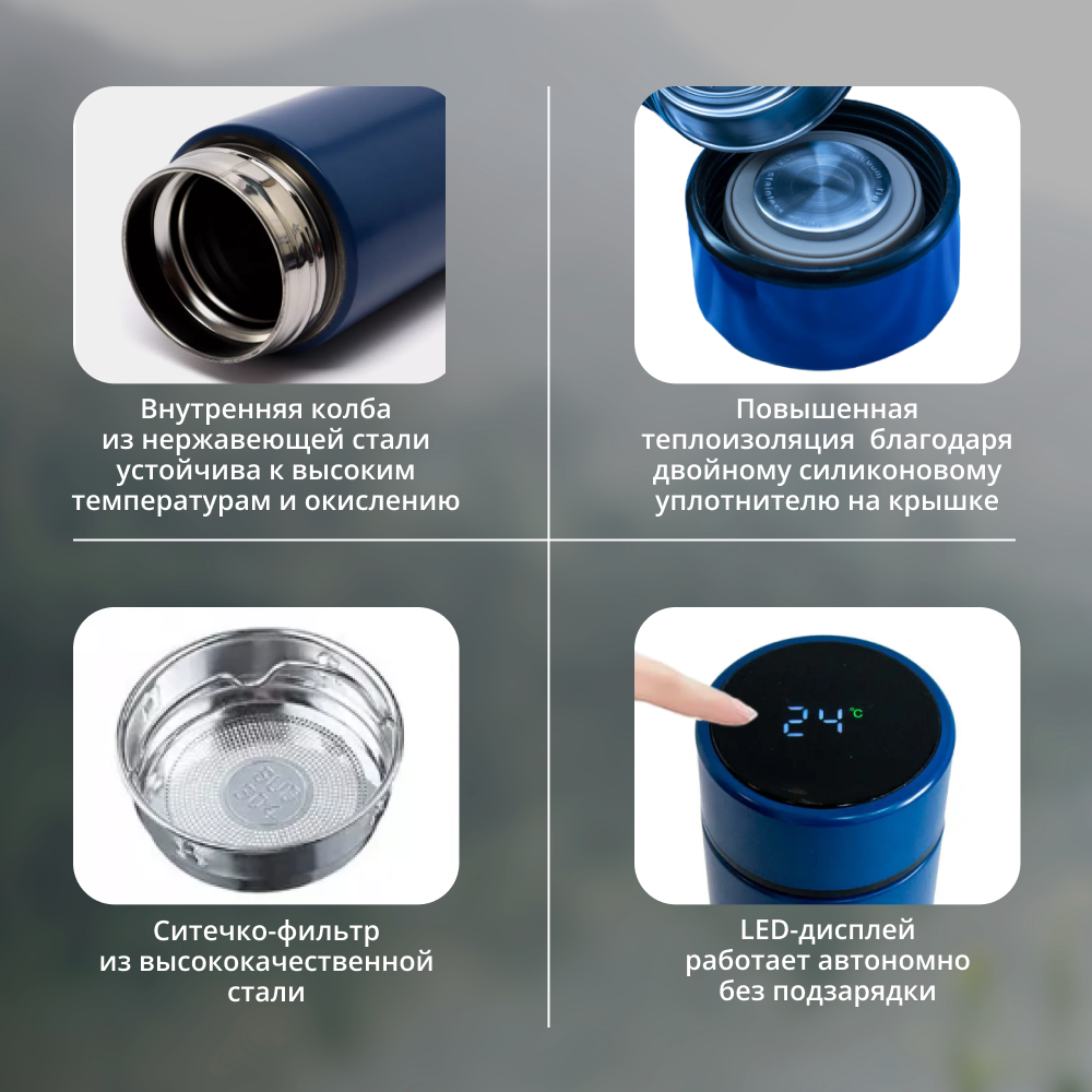 Термос с LCD дисплеем Синий / Термос с датчиком (индикатором) температуры / Термобутылка / Автокружка информация: