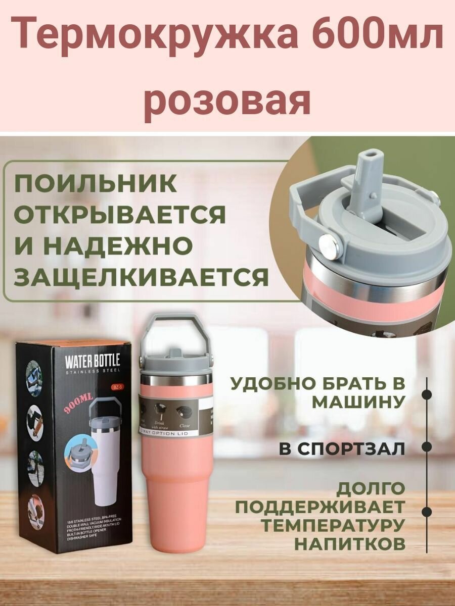 Отзывы на Термокружка в автомобиль, стакан, термос, непроливайка, розовая 600мл