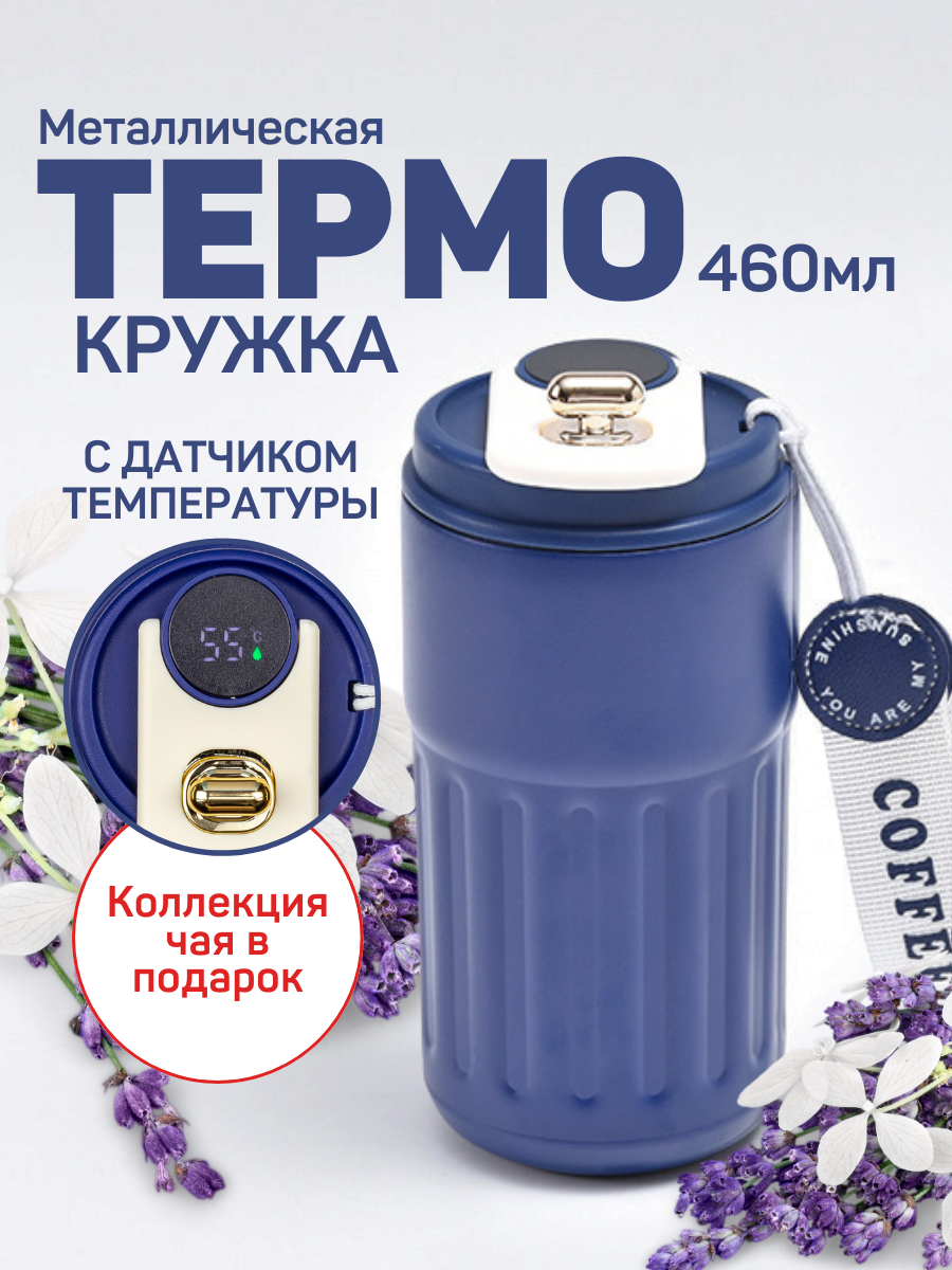 Термокружка автомобильная для кофе/чая с датчиком температуры, 420 мл, синяя информация: