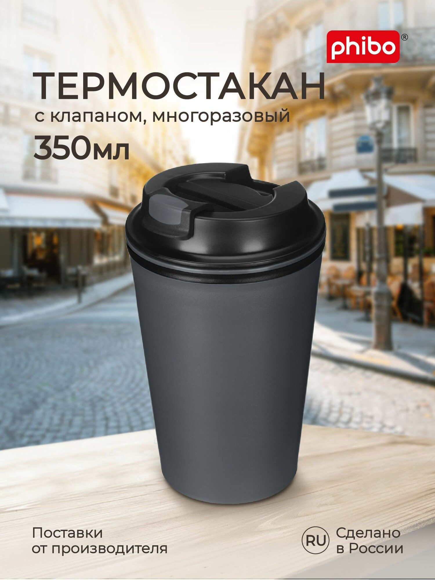 10 цен на Термостакан phibo 350мл c клапаном пластик серый