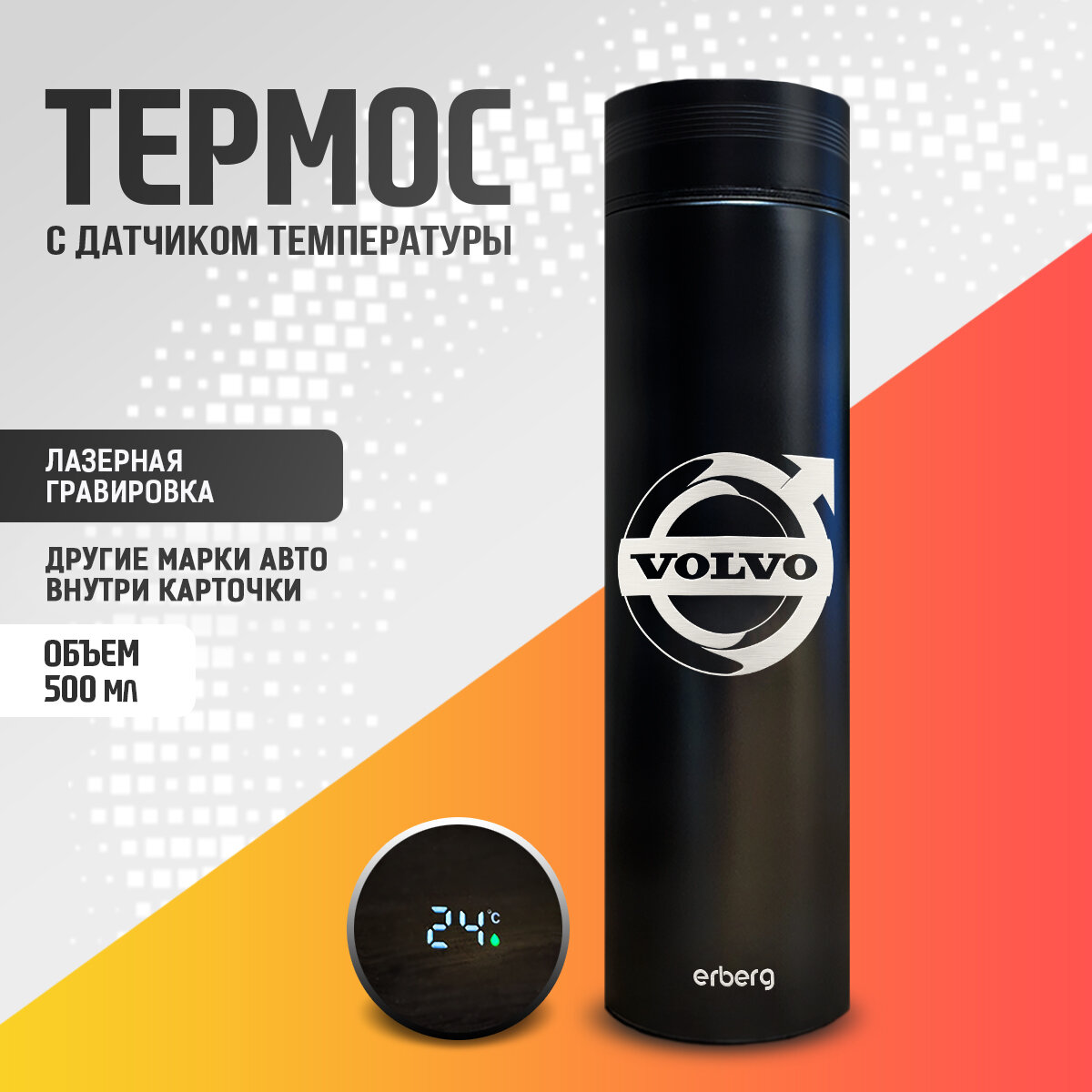 Термос для чая и кофе 500 мл с датчиком температуры Erberg, автомобильный Volvo информация: