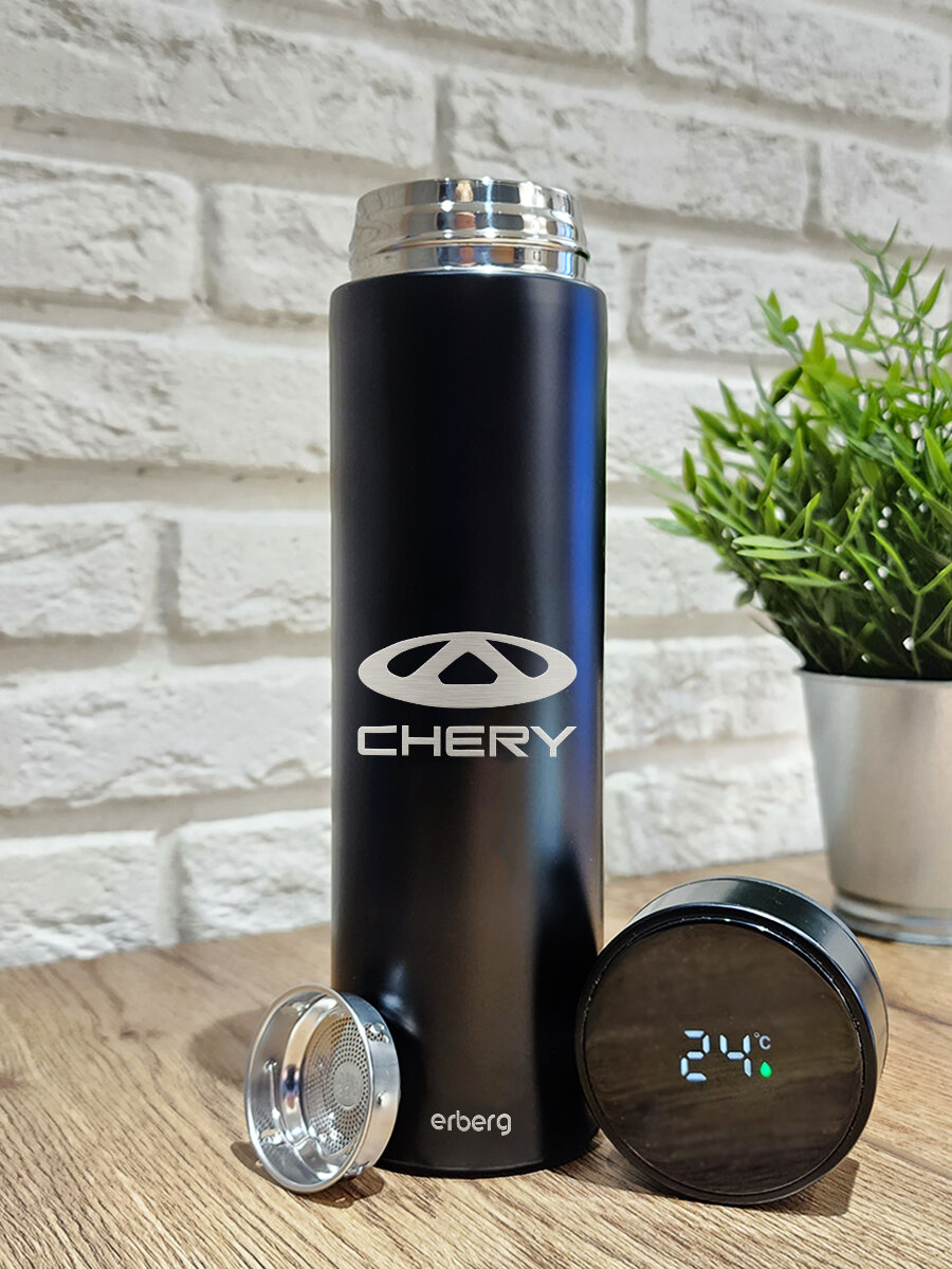 Термос для чая и кофе 500 мл с датчиком температуры Erberg, автомобильный Chery информация: