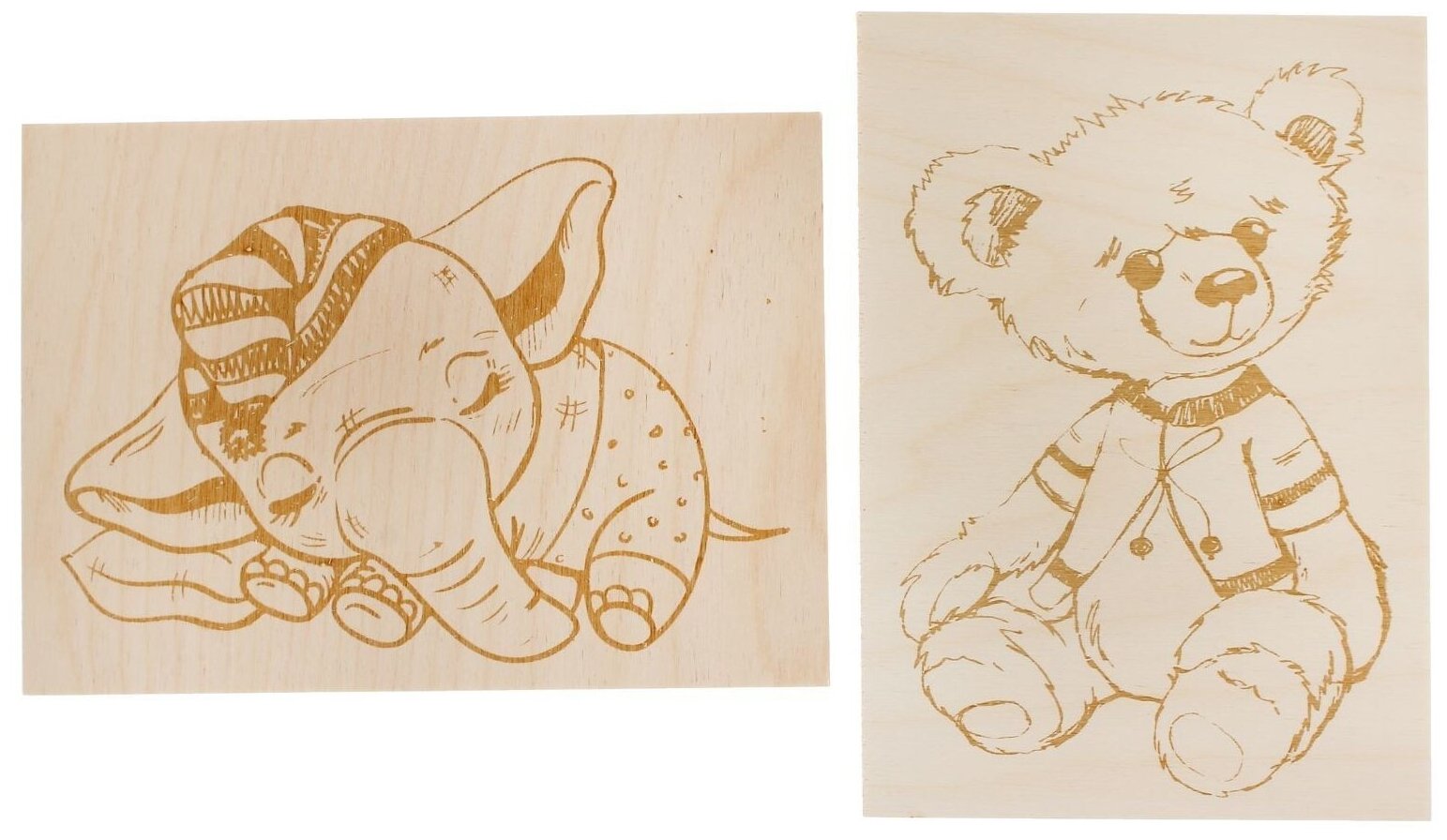 Доски для выжигания 2 шт Медвежонок и слоненок