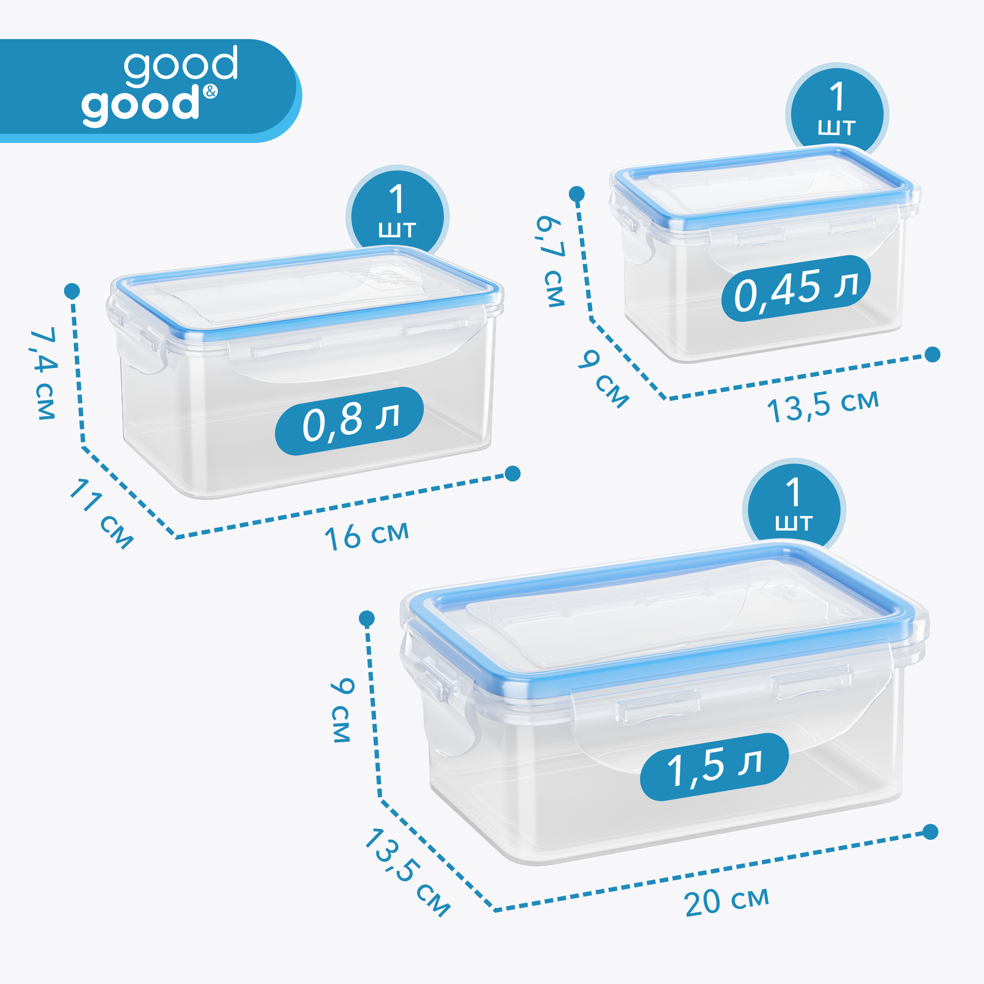 Контейнер для еды герметичный 3 шт good&good набор контейнеров для еды 450 мл + 800 мл + 1500 мл информация: