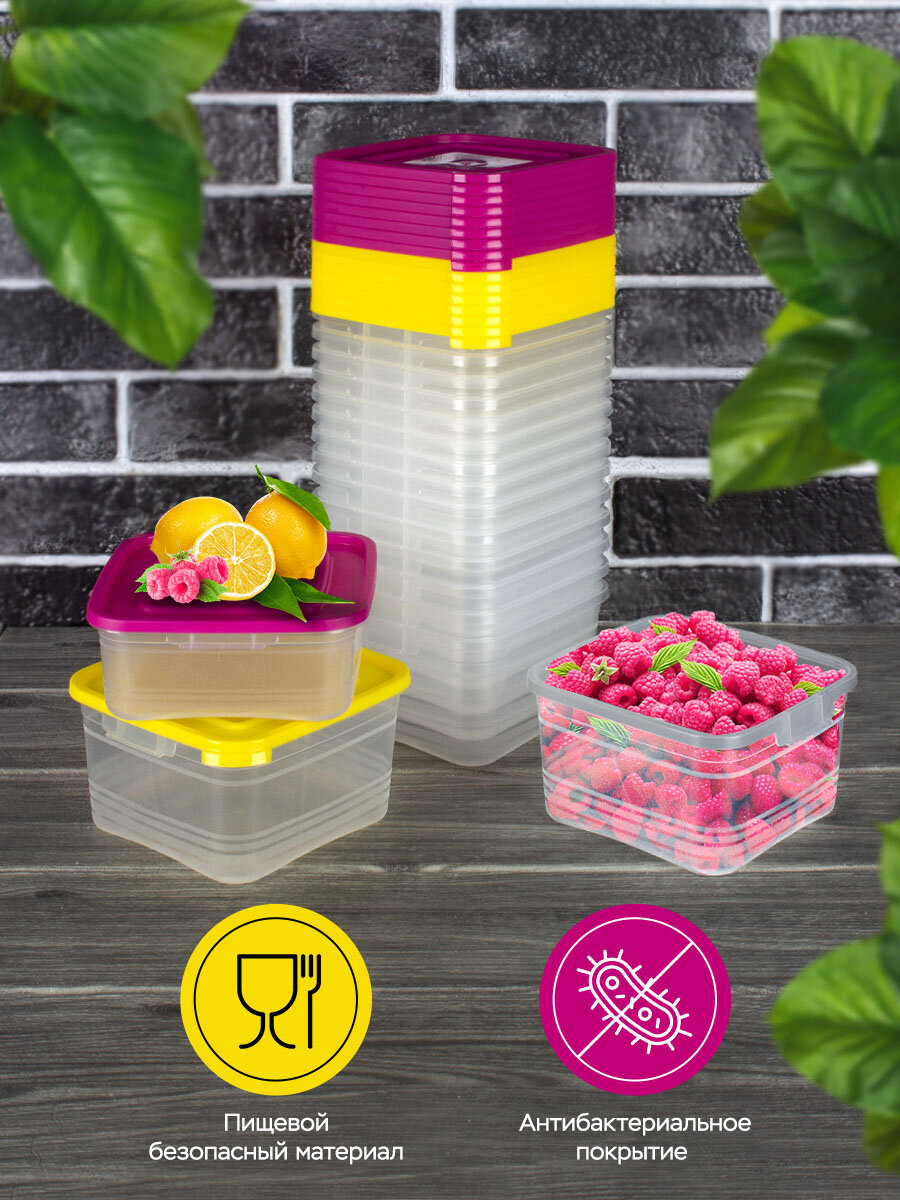 10 цен на Контейнеры для еды и заморозки 0,7 + 1л, фуксия + желтый, 17шт