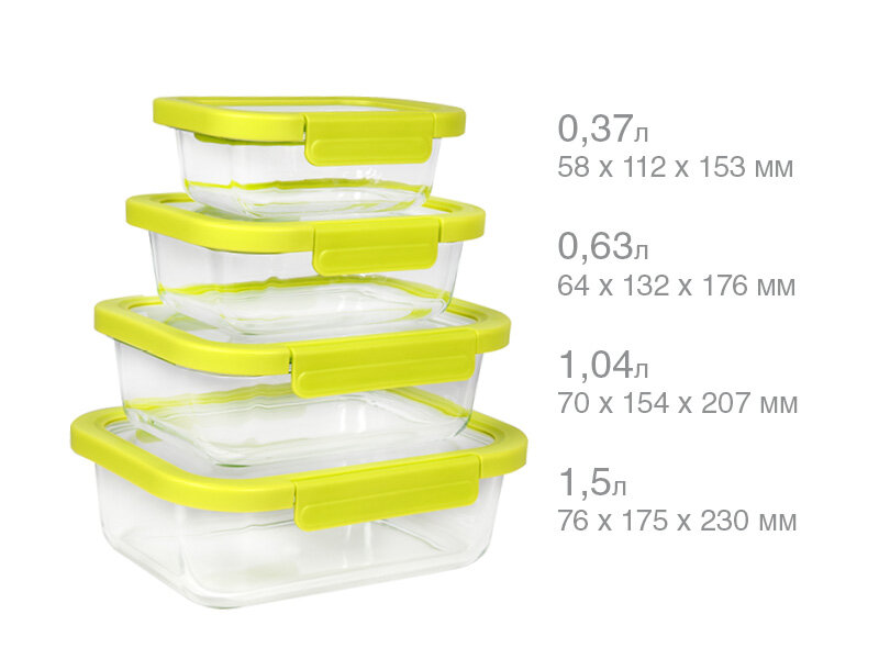 | Комплектация | контейнер объемом 0,37л; контейнер объемом 0,63л; контейнер объемом 1,04л; контейнер объемом 1,5л |