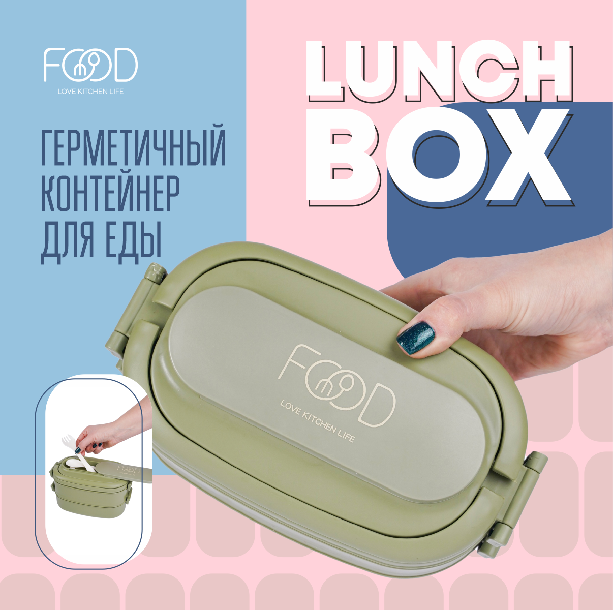 Отзывы на Герметичный ланч-бокс для еды 1550мл, столовые приборы в комплекте зеленый