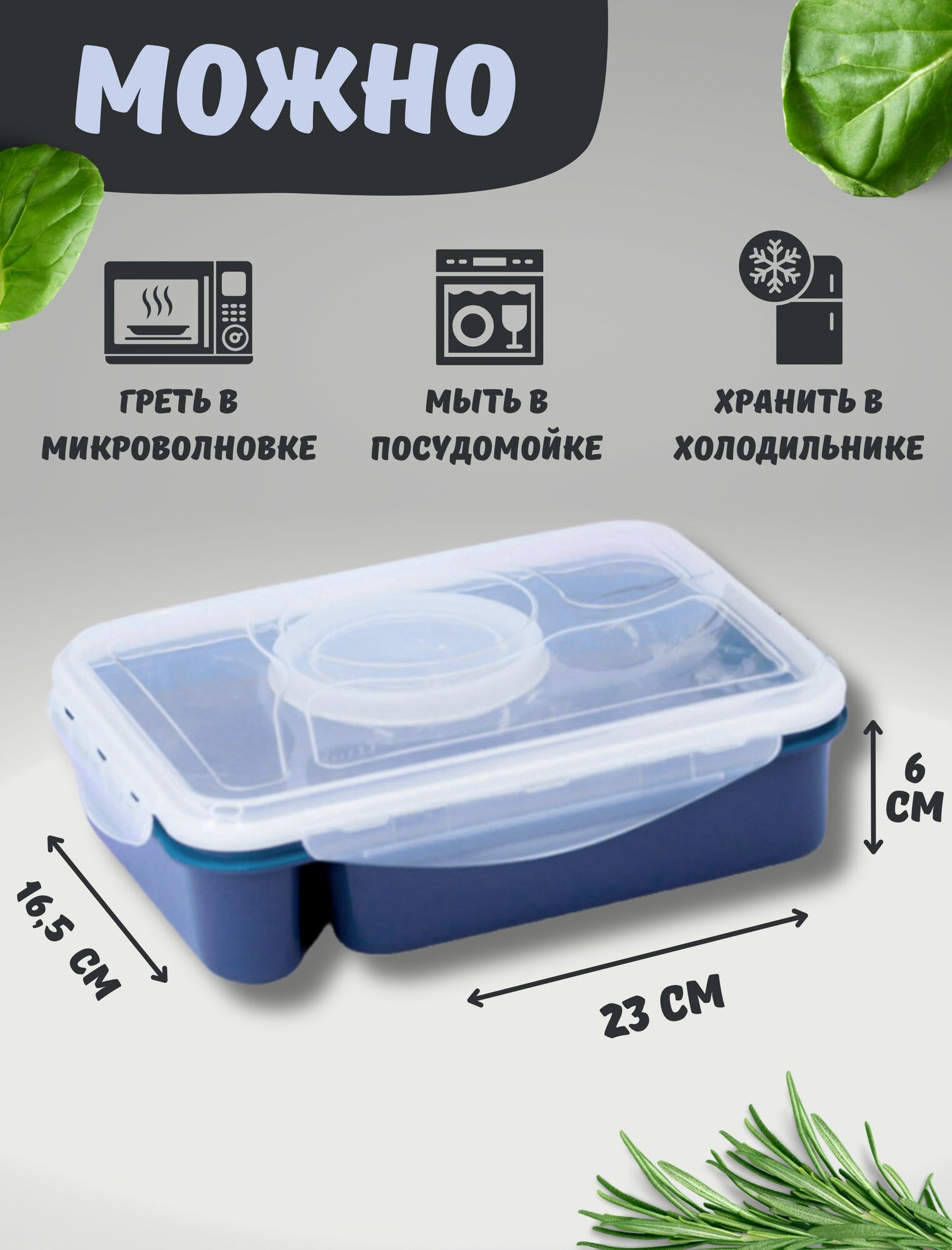 Ланч бокс контейнер для еды с раздельными секциями - синий , 25х18х7 / металлический