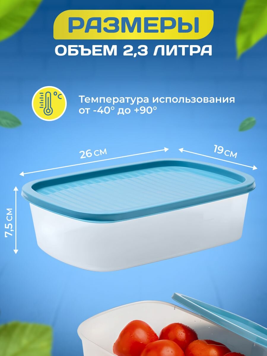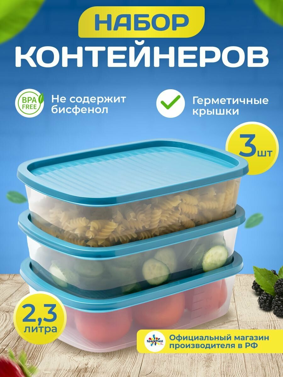 Контейнеры пищевые, SparkPlast, набор 3шт., по 2,3 л., с синей крышкой. информация: