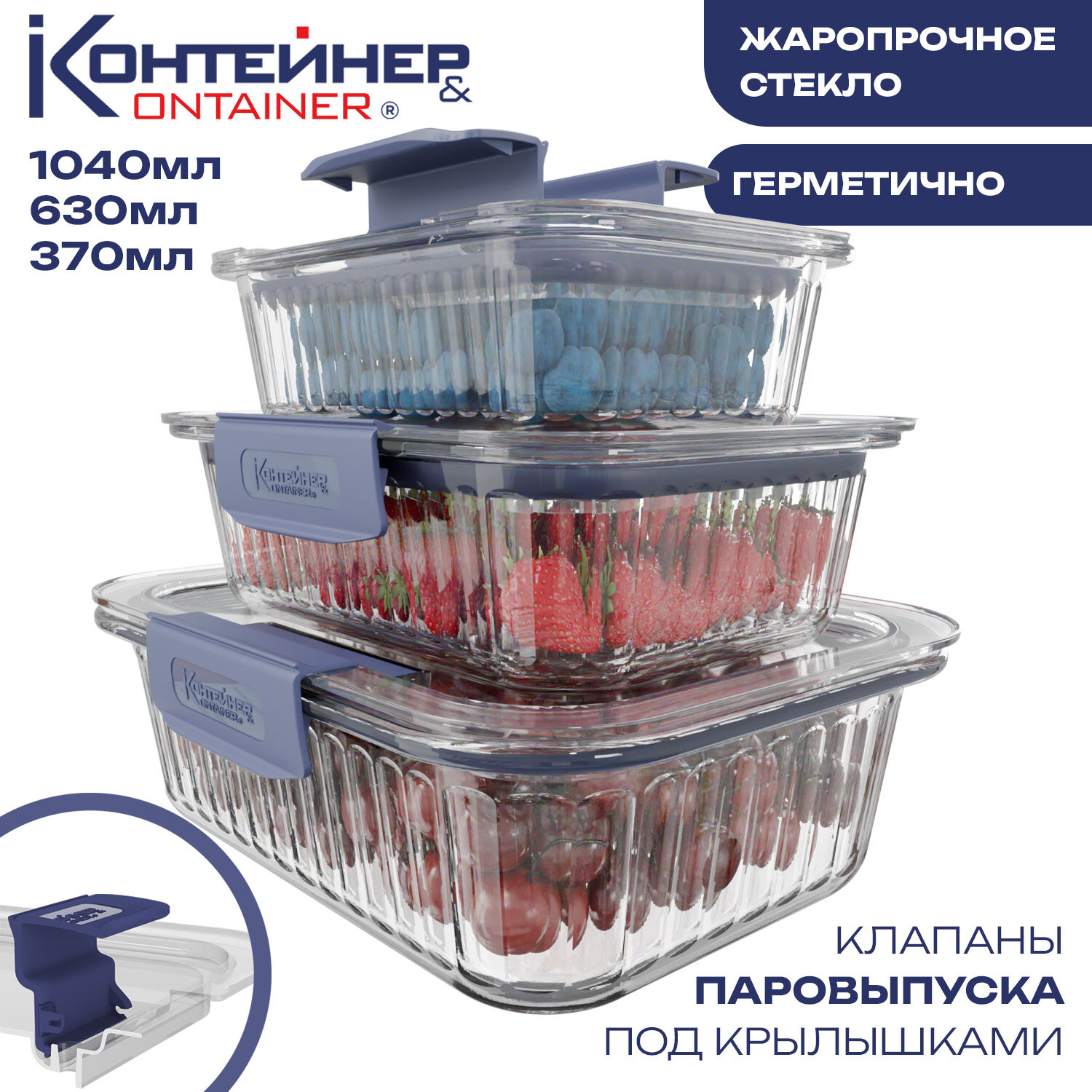 Набор стеклянных контейнеров для еды Контейнер&Container, 3 шт информация: