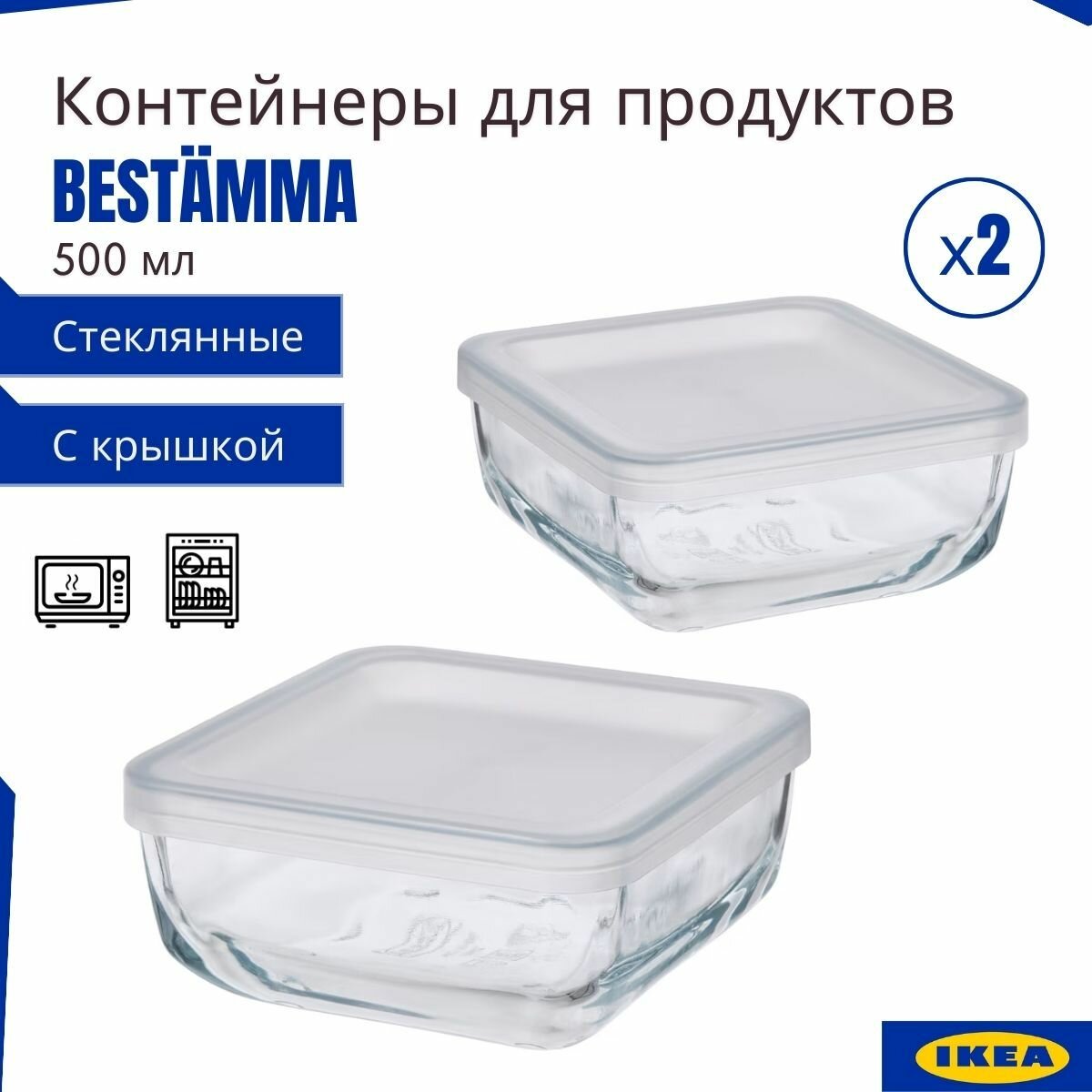10 цен на Стеклянные контейнеры для еды с крышкой икеа, 2 шт. Контейнер стеклянный с крышкой IKEA, 0,5 л