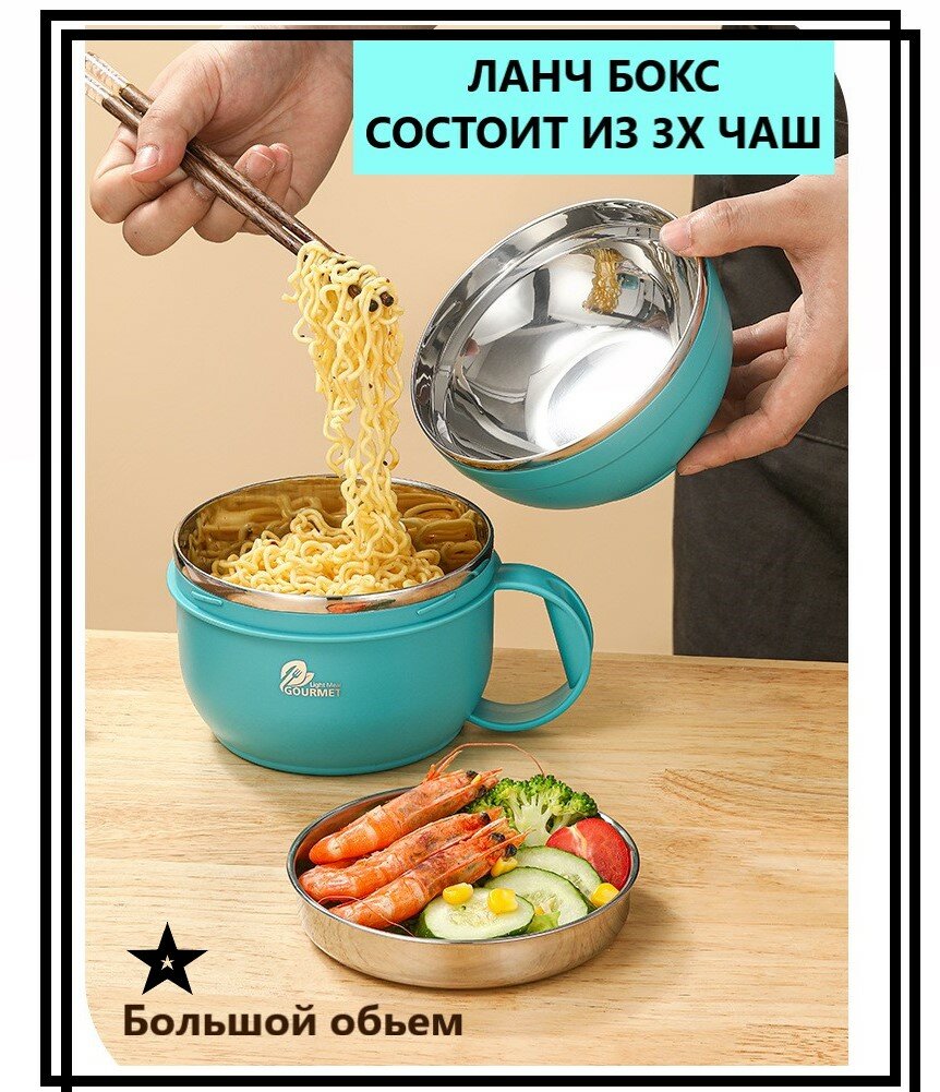Ланч бокс, зеленый, миска для китайской лапши, чашка для супа, контейнер для горячей еды информация: